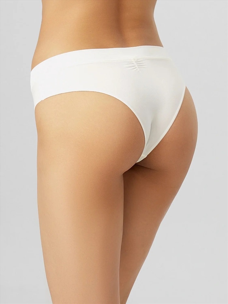Женские трусы силуэта «бразилиана» со средней посадкой выполнены из мягкой и гладкой микрофибры, которая обеспечивает комфорт и легкость в носке. Ластовица из кулирной глади добавляет гигиеничности и приятные тактильные ощущения. Задняя деталь украшена сборкой по центру в верхней части, что придает модели изящный акцент и подчеркивает форму. Нижние срезы обработаны эластичной тесьмой, благодаря чему изделие надежно фиксируется, не создавая дискомфорта и оставаясь незаметным под одеждой. Такой вариант идеально подойдет для тех, кто ценит сочетание удобства и утонченного дизайна.