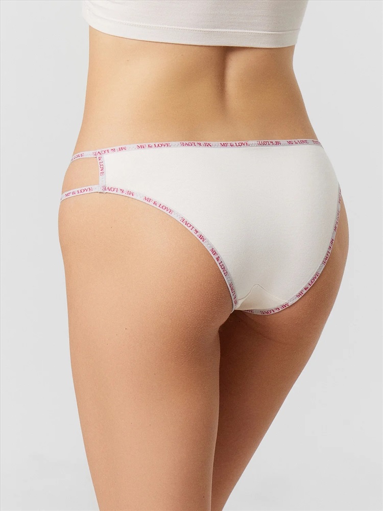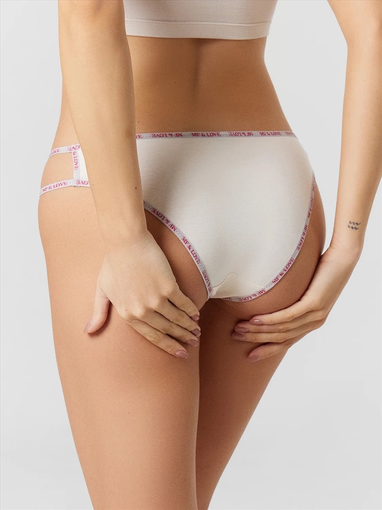 Трусы женские, силуэт слип, из трикотажного кулирного полотна, со средней посадкой, с протяжками по бочкам. Передняя и задняя детали цельные. Подкладка ластовицы из кулирной глади отлетная по переднему срезу. На бочках отверстия.