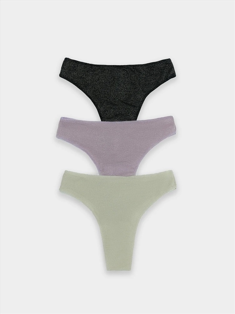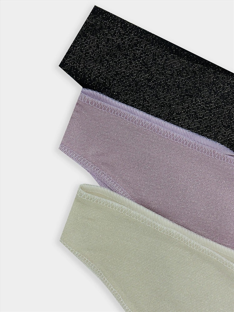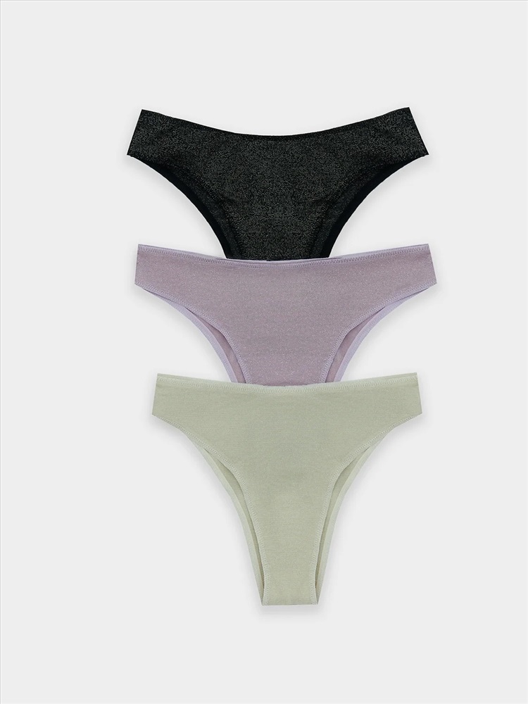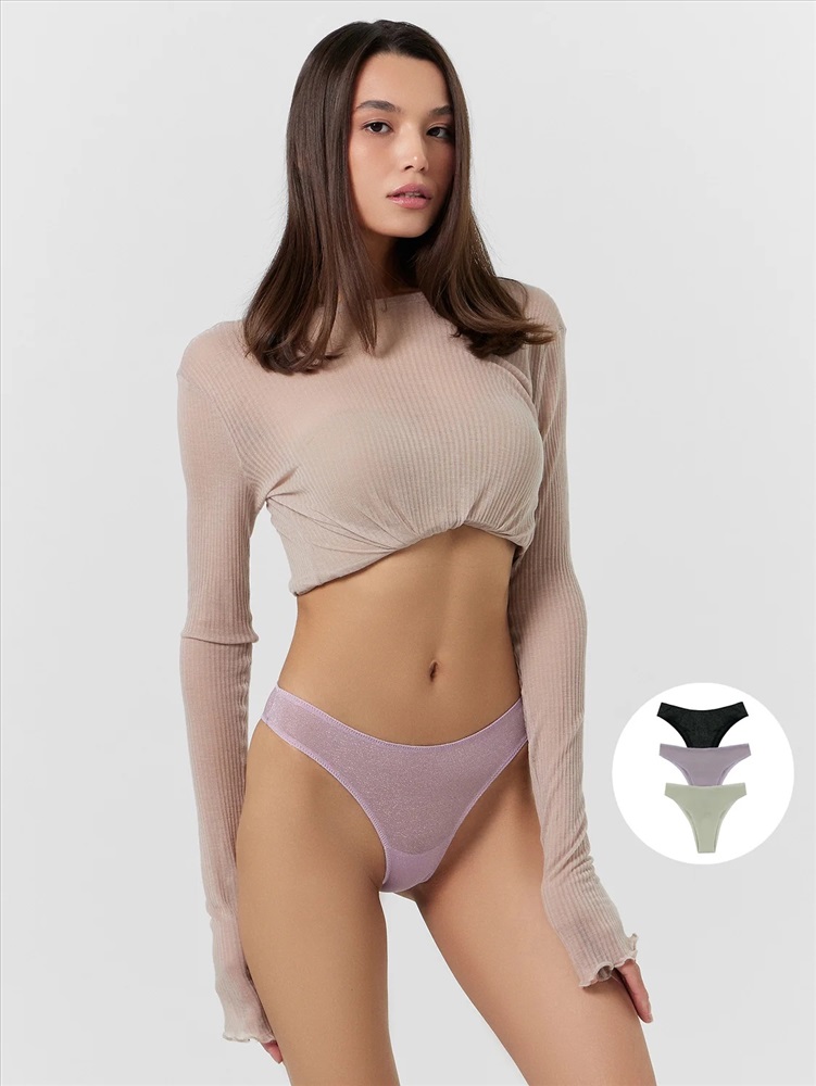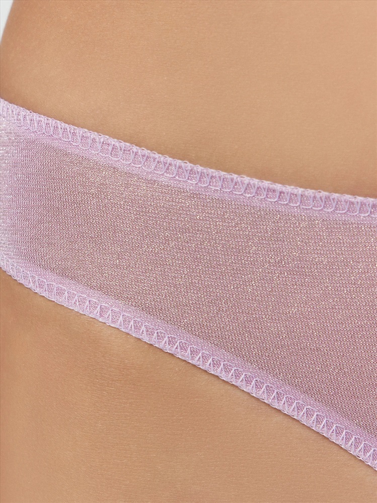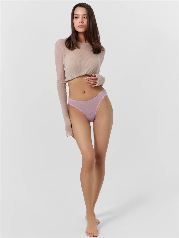 Трусы женские, силуэт бразилиана, из микрофибры с люрексом, со средней посадкой. Передняя и задняя детали цельные. Подкладка ластовицы из кулирной глади, отлетная по переднему краю.