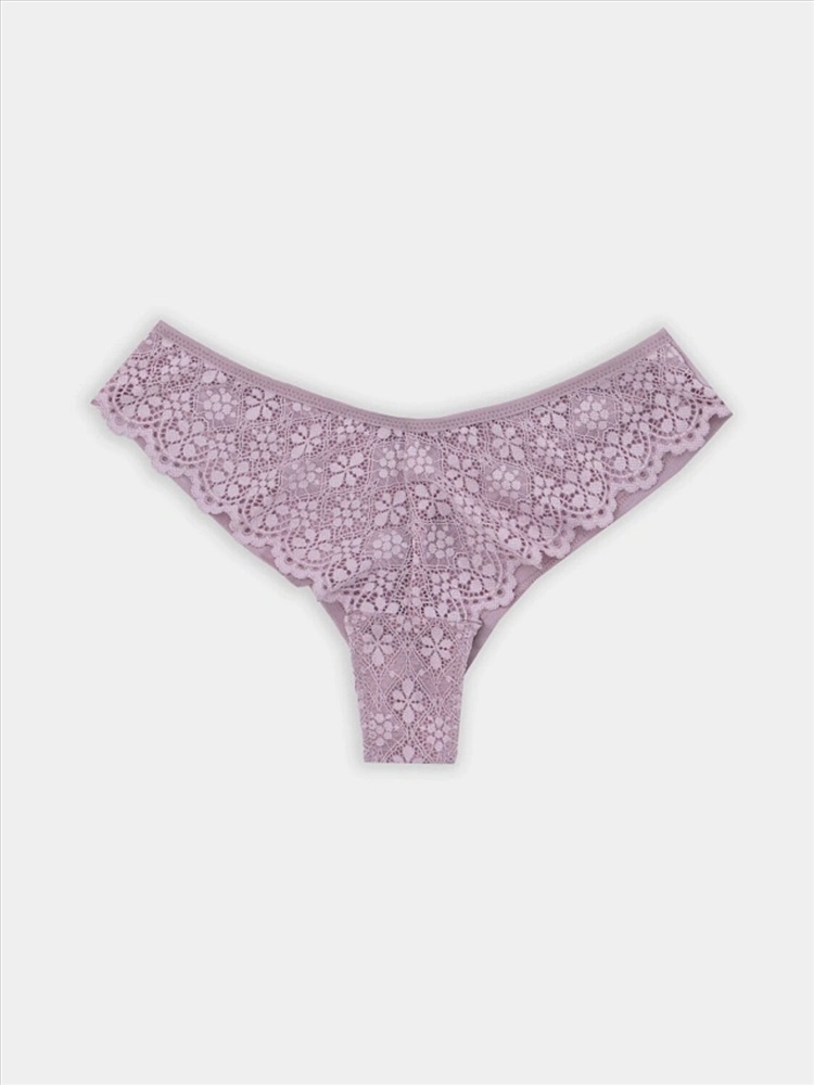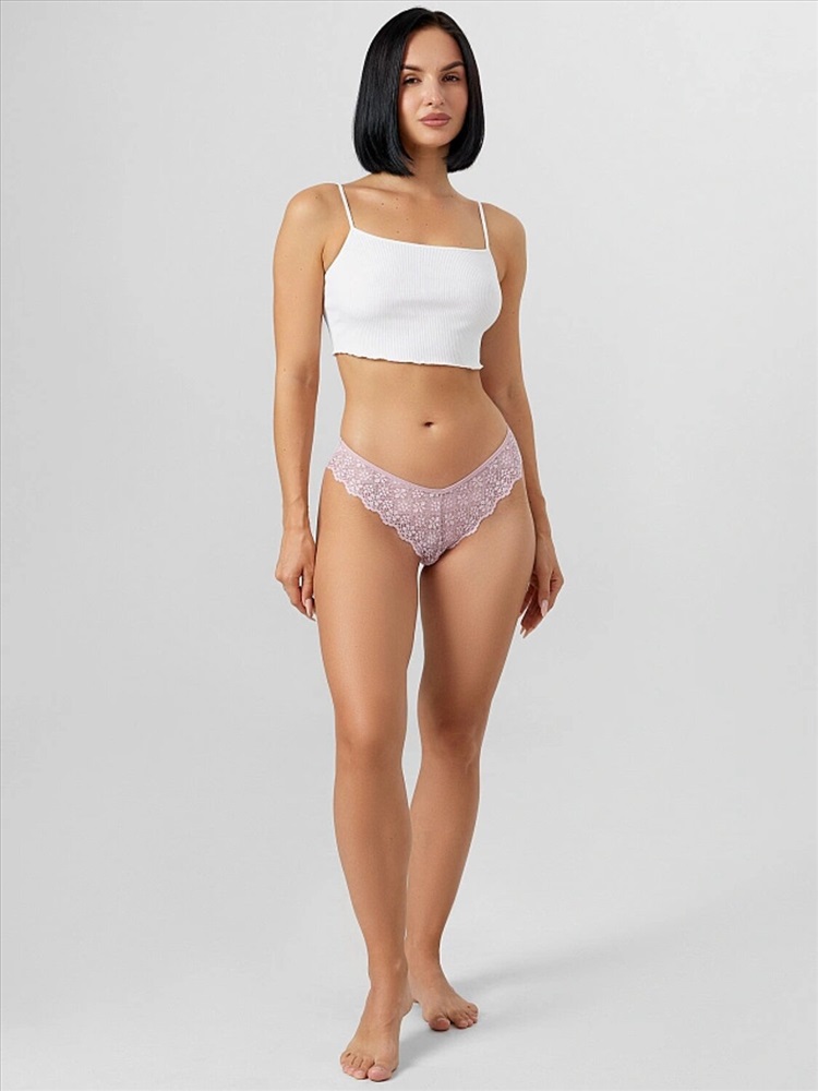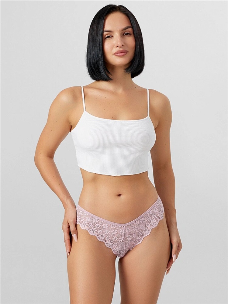 Передняя часть из ажурного кружева добавляет лёгкости и чувственности, а задняя деталь из гладкого хлопка со средним швом гарантирует комфорт и поддержку. Гигиеничная ластовица из натурального материала и аккуратная обработка краёв исключают натирание.