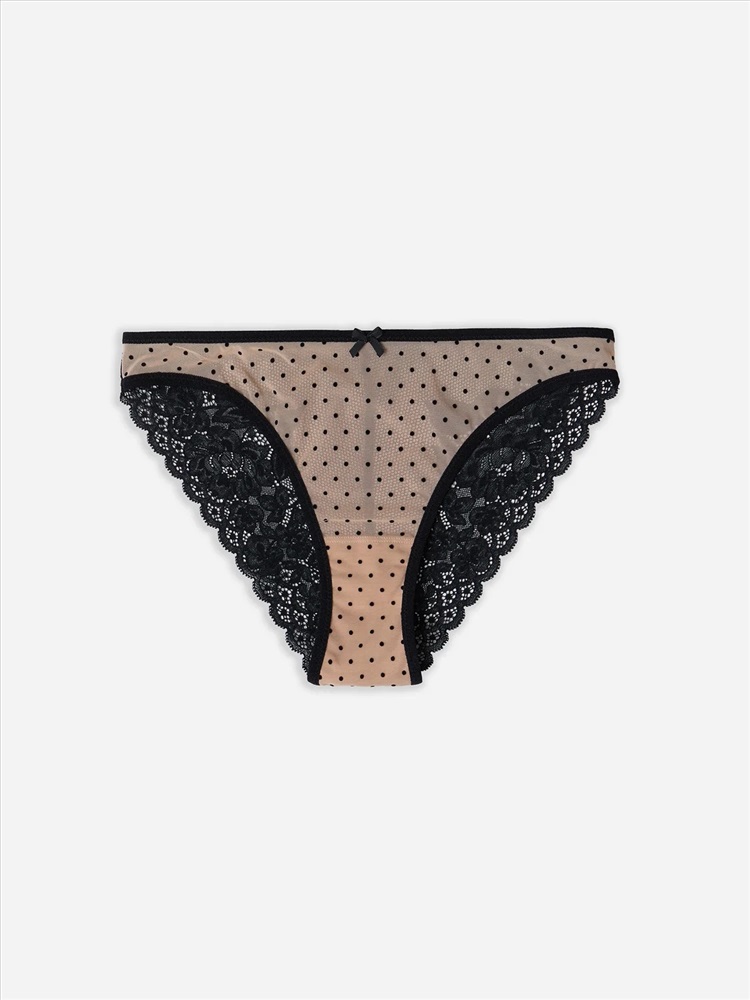 Трусы женские модель слипы, со средней посадкой. Передняя деталь цельная, выполнена из эластичного полотна сетка. Задняя деталь из эластичного кружева, со средним швом. Подкладка ластовицы выполнена из кулирного полотна, отлетная по переднему краю.