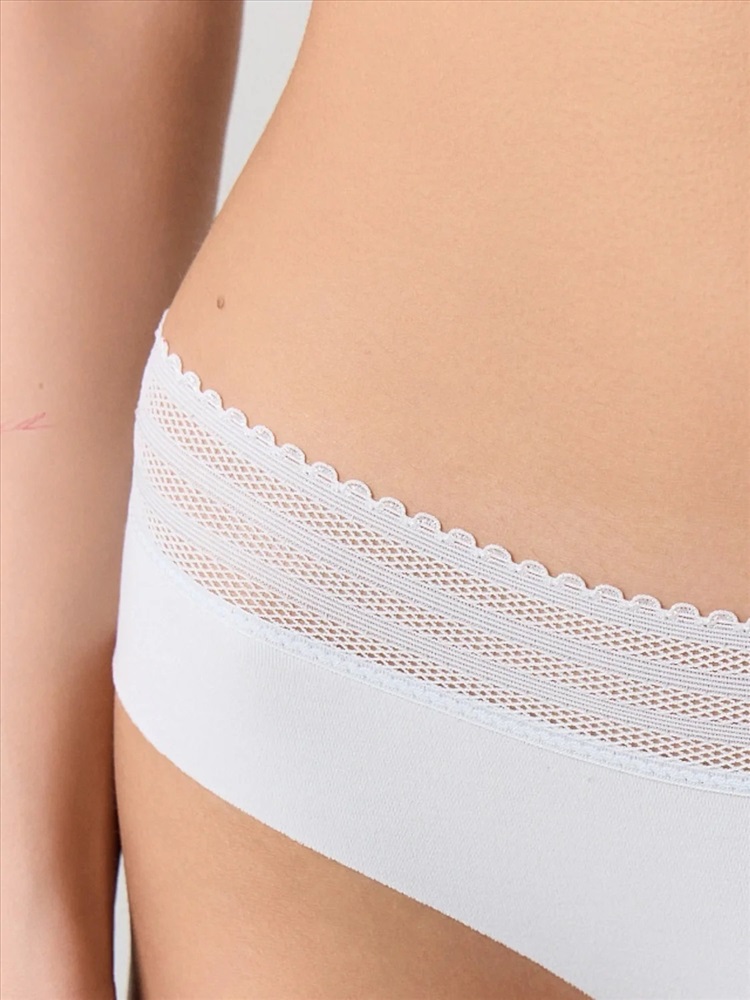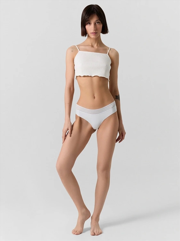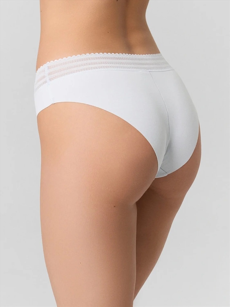 Трусы женские классического силуэта со средней посадкой из интерлока. Передняя деталь цельная. Ластовица цельная на подкладке из кулирного полотна, отлетная по переднему краю, обтачная по боковым срезам