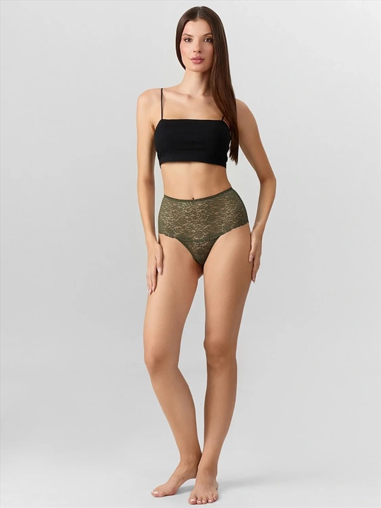 Изысканные женские трусики-бразилиана с высокой посадкой — идеальный выбор для тех, кто ценит элегантность и комфорт. Выполненные из эластичного кружева, они прекрасно облегают фигуру. Подкладка ластовицы из кулирного полотна обеспечивает дополнительное удобство, а верхний срез, обработанный эластичной тесьмой, гарантирует надежную посадку. Дополните комплект подходящим верхом из той же коллекции, чтобы создать эффектный и гармоничный образ. Превосходный вариант для подарка себе или близким.