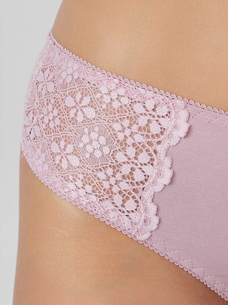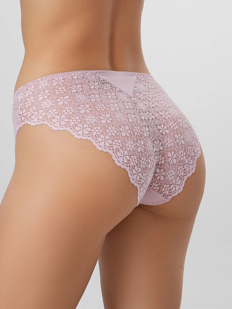 Передняя центральная деталь и ластовица выполнены из кулирки. Ластовица отлетная по переднему срезу. Боковые части переда и задняя деталь из широкого кружева. Трусы с боковыми швами. Верхний срез трусов и срезы по ножкам пер. дет. обработаны эл. тесьмой 10мм, 8мм рабочая зона (KTE6-10 эл.тесьма с зубом, Arteks E2298 ) на 4-укольном зигзаге в 1 прием. На задней детали шов по центру.