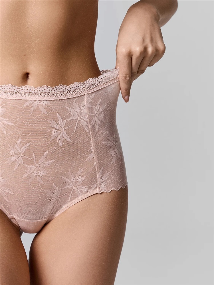 Трусы женские,силуэт-макси.Выполнены из кружева 27см. (арт.16253-27) . Верхний срез трусов обработан узким кружевом 25мм(MLB 20248-2.5,L64-2.5),внутри жилка 6мм (жилка WT4-6,девсел 13460W) Задняя деталь с центральным швом. Нижние срезы обработаны эл.тесьмой (жилка WT4-6,девсел 13460W) Подкладка ластовицы выполнена из кулирки, отлетная по переднему срезу.