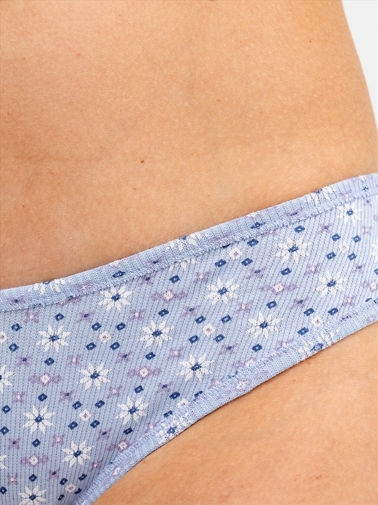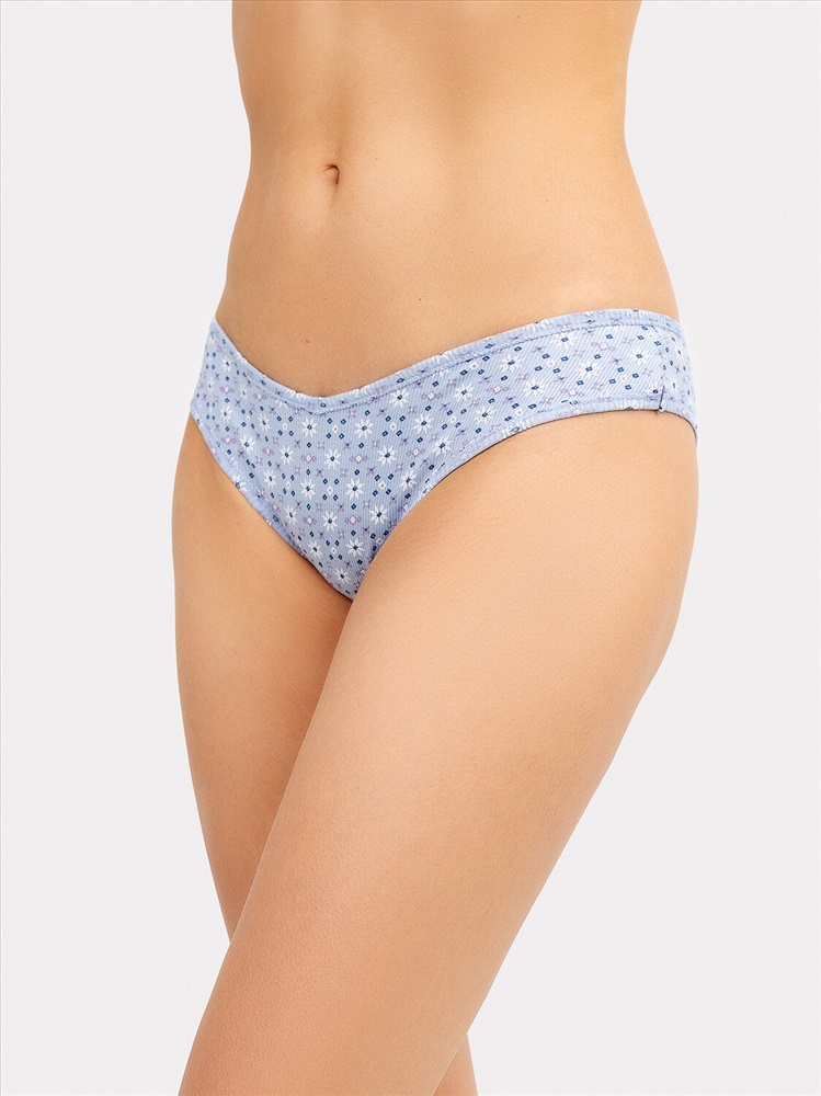 Трусы женские, средняя линия талии, силуэт - бразилиано. Передняя и задняя детали выполнены из рибаны. Верхний срез трусов обработан бейкой поперечной из рибаны, внутри жилка 6мм. Нижние срезы обработаны бейками поперечными из рибаны. Подкладка ластовицы из хлопка, отлетная по верхнему срезу. Посередине бейки по верхнему срезу передней и задней детали застрочена «птичка».