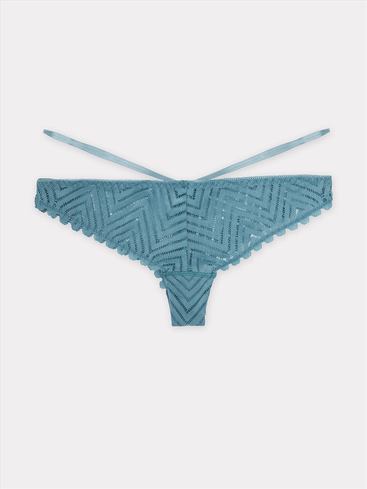 Интригующие трусики-бразилиана из элегантного кружева. Посадка по талии – чуть занижена. Декор в виде тонких тесемок и миниатюрного бантика делает эту модель максимально необычной и женственной.