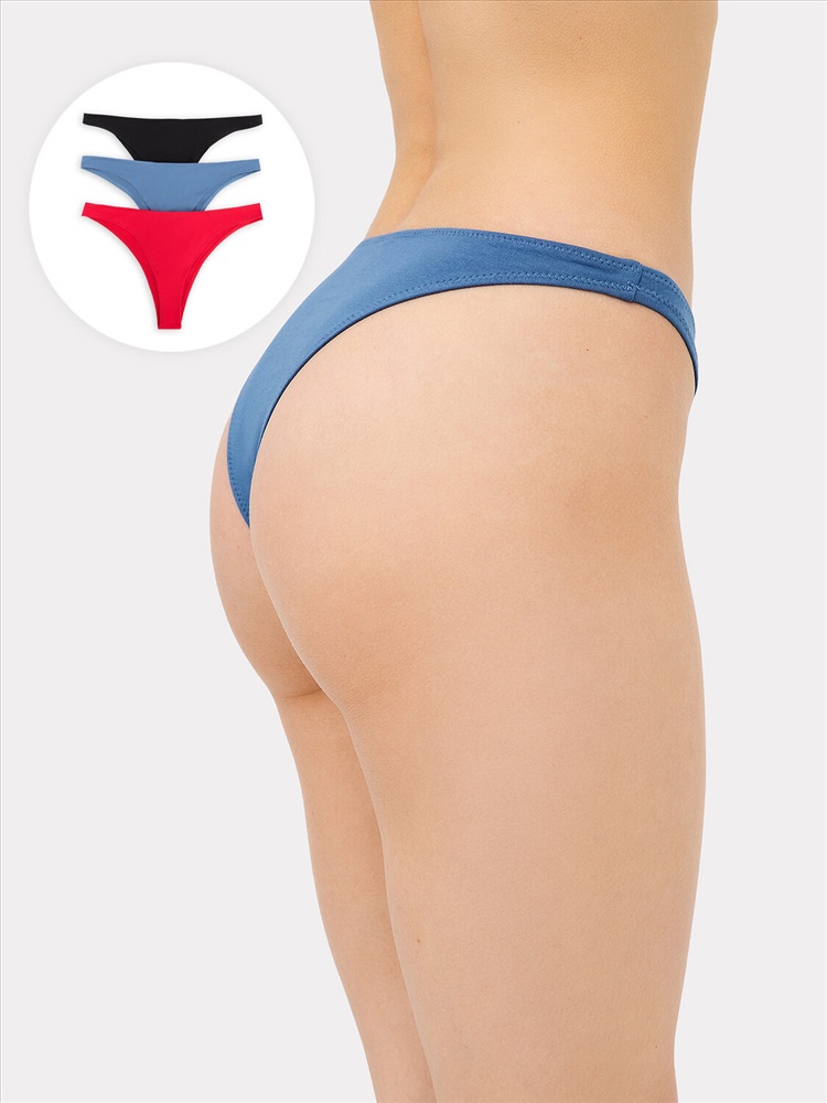 Трусы женские силуэт бразилиано из кулирной глади. Нижняя ластовица отлетная по переднему срезу. Передняя и задняя детали цельные.Верхний и нижний срезы обрабротаны швом вподгибку в 2 приема с эластичной тесьмой.
