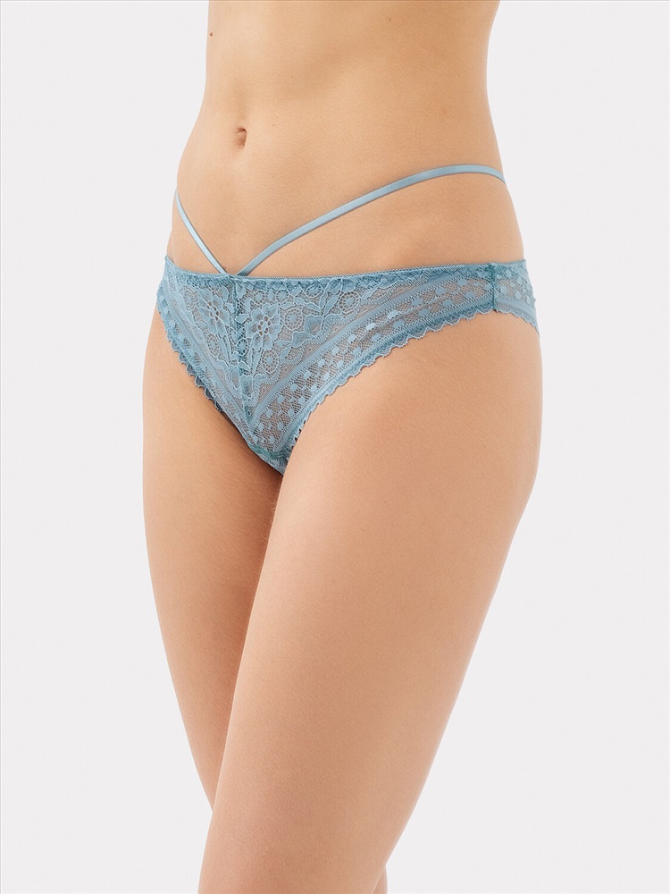 Интригующие трусики-бразилиана из элегантного кружева. Посадка по талии – чуть занижена. Декор в виде тонких тесемок и миниатюрного бантика делает эту модель максимально необычной и женственной.