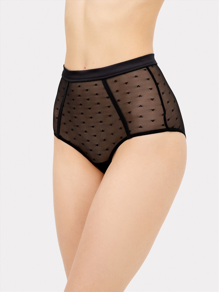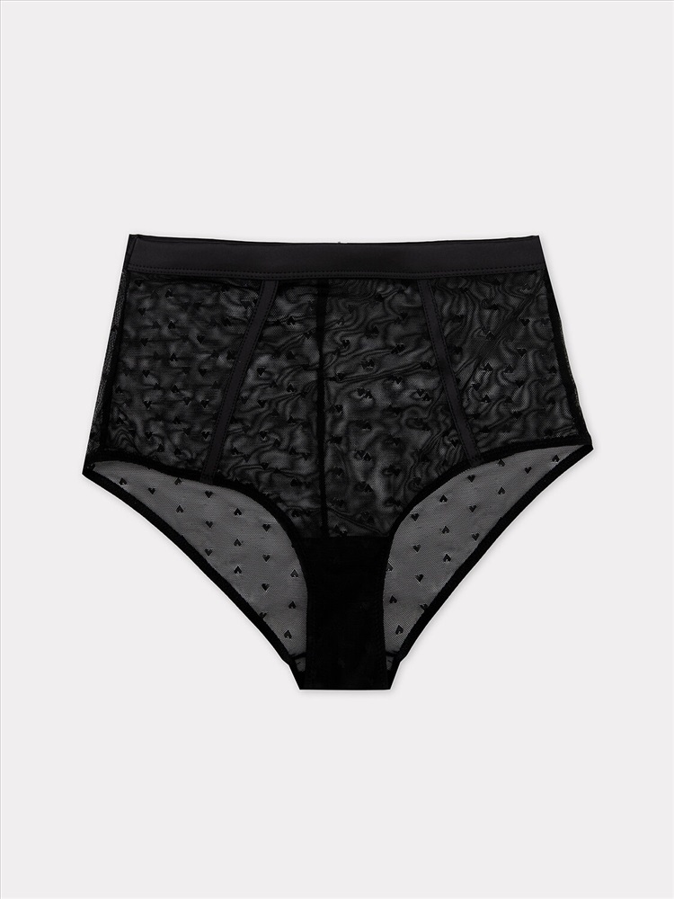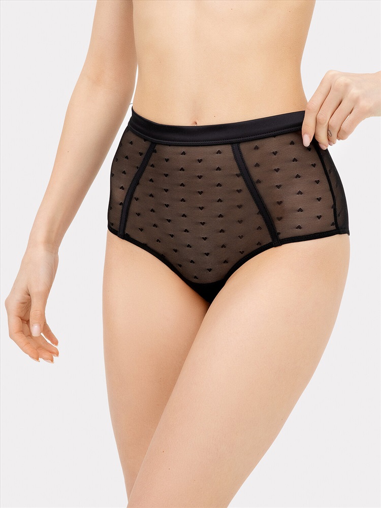 Трусы женские высокая линия талии, силуэт - макси. Трусы выполнены из кружевного полотна, отделка - ткань. Верхний срез окантован бейкой, с внутр. тесьмой. Нижние срезы обработаны жилкой. Декоративные элементы - обтачки по передней детали из ткани. Верхний срез ластовицы отлетной.