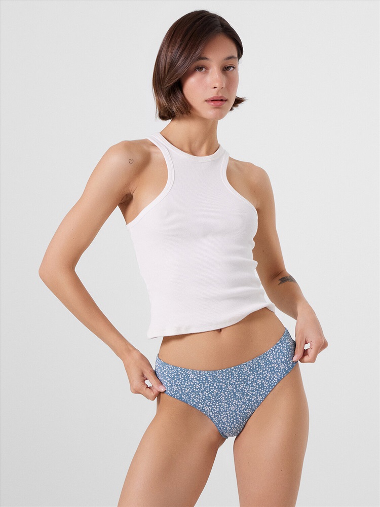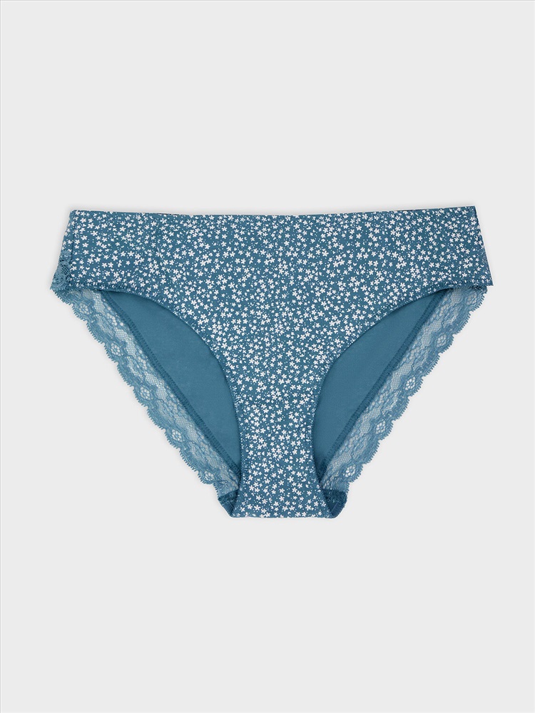 Классические трусики из натурального хлопкового полотна. Традиционная линия талии. Верхний срез трусиков обработан швом вподгибку, нижние передние – тесьмой, а задние декорированы узкими полосками из нежного кружева. Классика с изюминкой!
