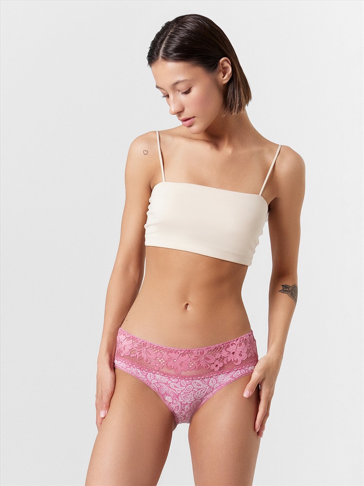 Невероятно милые повседневные классические женские трусики из высококачественного хлопка и элегантного кружева. Линия талии чуть завышена, боковые части немного расширены. На верхнем срезе и по ножкам – эластичная тесьма. Верхняя часть передней детали выполнена из полупрозрачного кружева. Очень удобные и комфортные, ткань слегка тянется, отлично пропускает воздух, кожа в них дышит. Не сковывают движений, отлично подходят на каждый день и для занятий спортом за счет удобной посадки. Ничего не скатывается и не сползает. Комфортная модель повседневного белья для женщин с интересными базовыми цветами и красочными принтами. Если вам нужны красивые, но в тоже время универсальные женские трусики, этот вариант точно для вас. Красивое женское нижнее белье — это универсальный подарок себе, родным и близким на любой праздник и просто без повода. Рекомендуем!