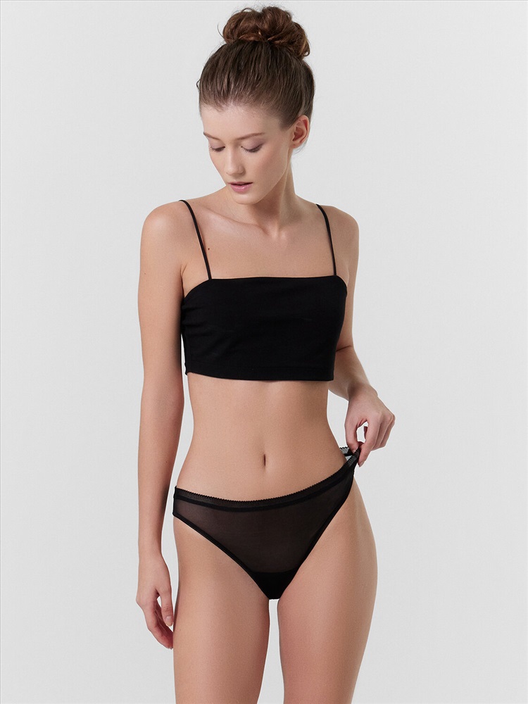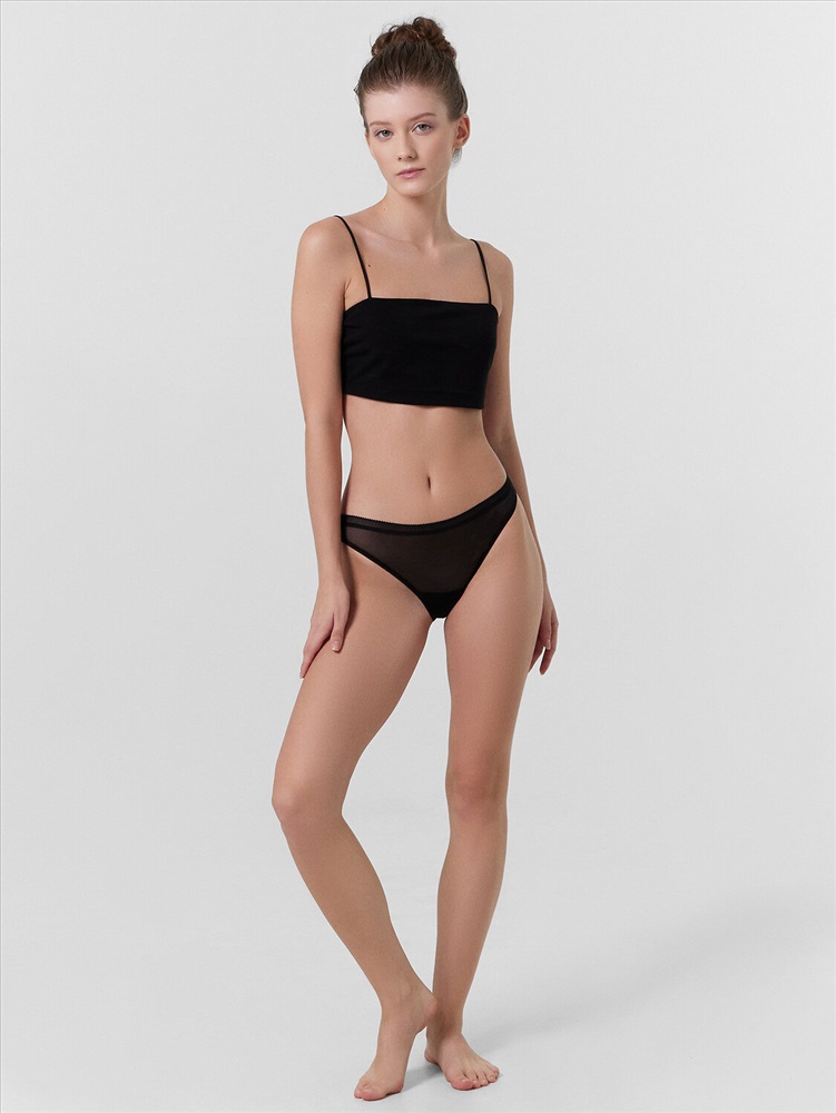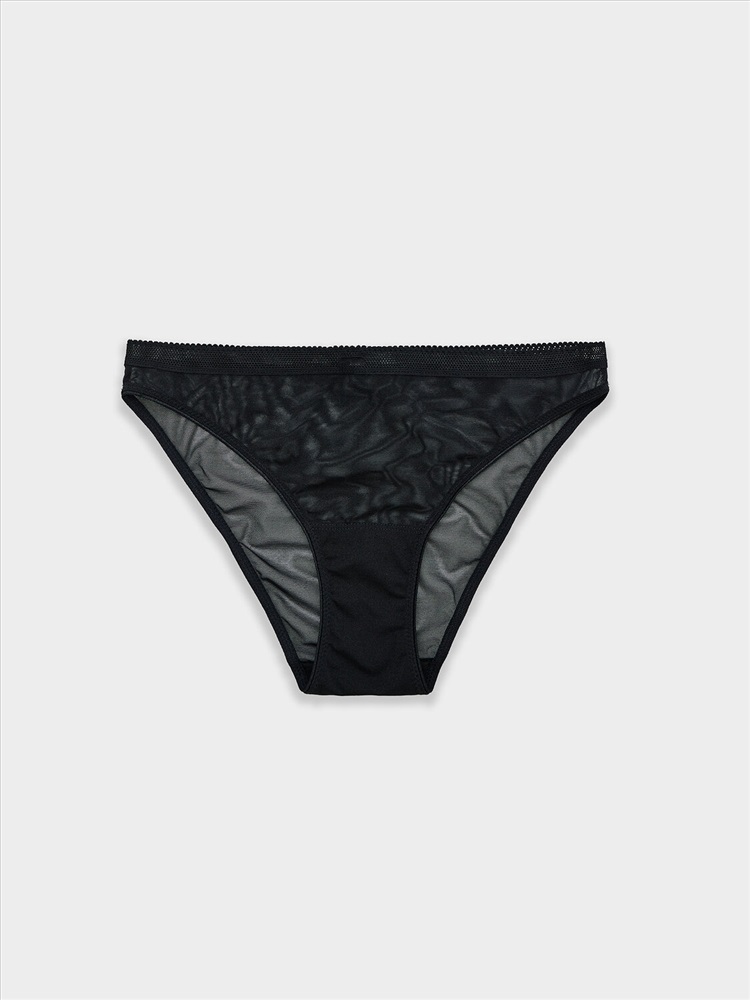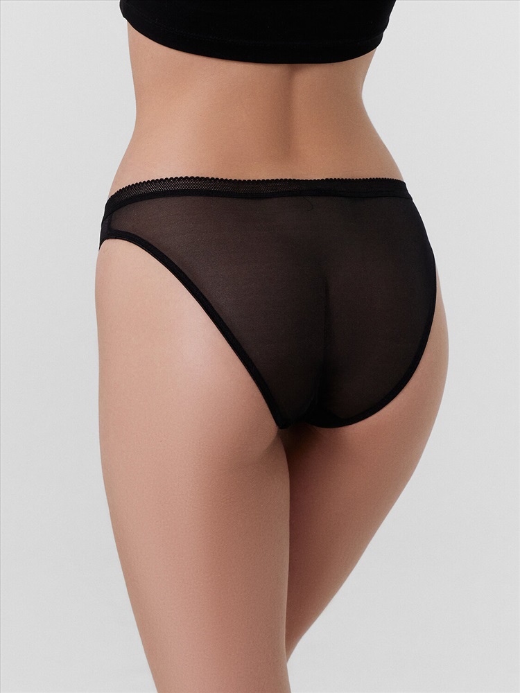 Трусы женские со средней посадкой силуэта «слип». Передняя деталь цельная, выполнена из эластичной сетки. Ластовица из кулирного полотна настрочена по переднему краю.