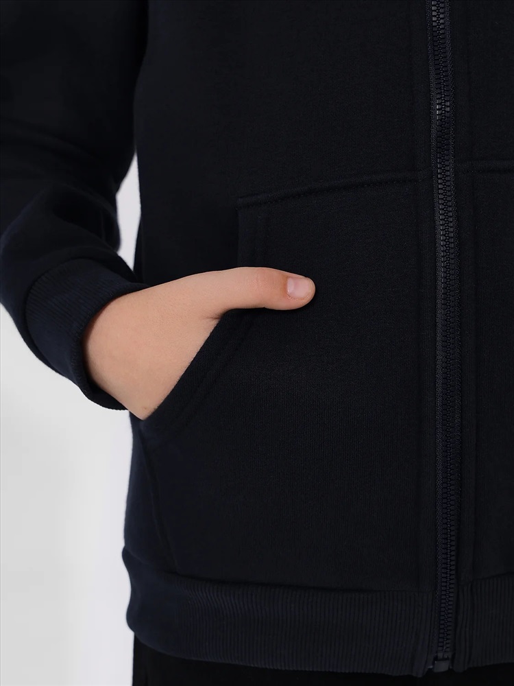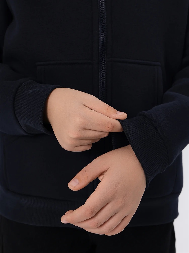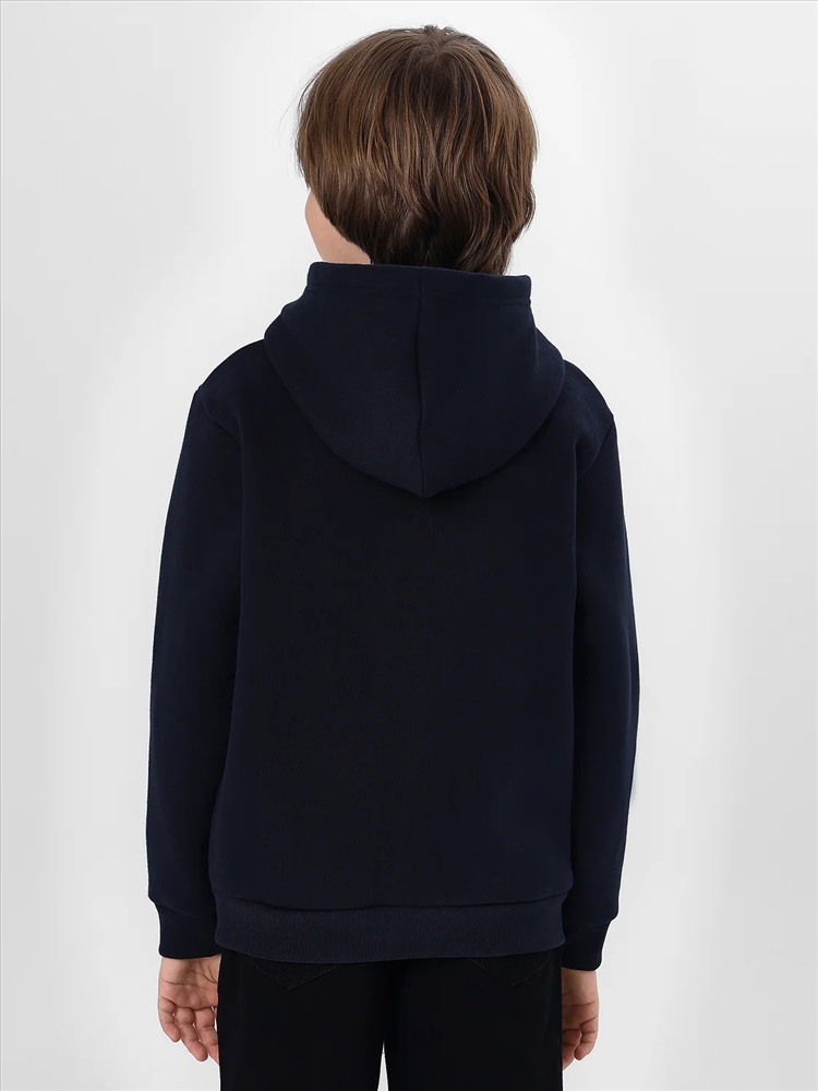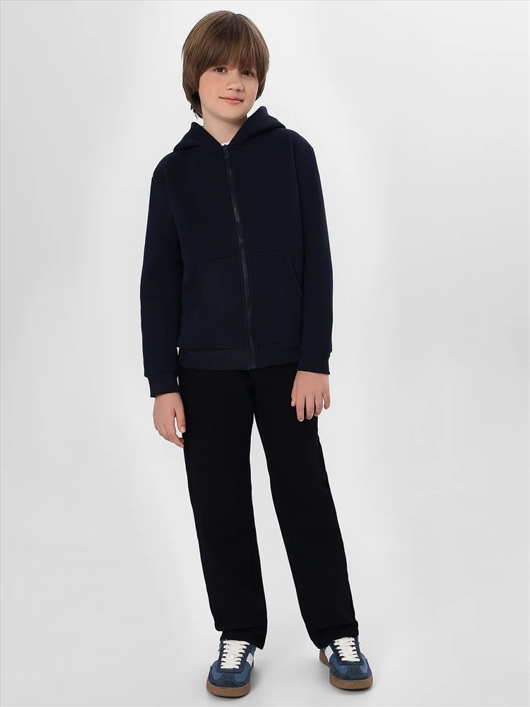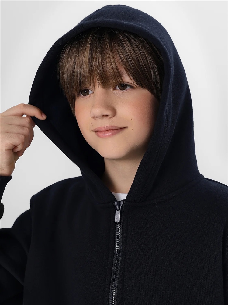 Стильная спортивная толстовка на молнии для мальчиков. Выполнена из теплого и нежного трикотажного футера с подчесом. Прямой свободный силуэт дополнен уютным капюшоном и удобным карманом-кенгуру. Рукава длинные, линия плеча немного спущена. Рекомендуем для прохладной погоды!