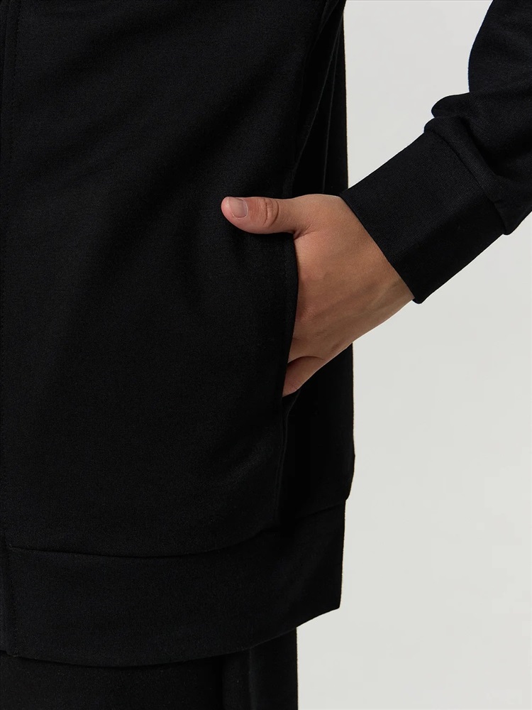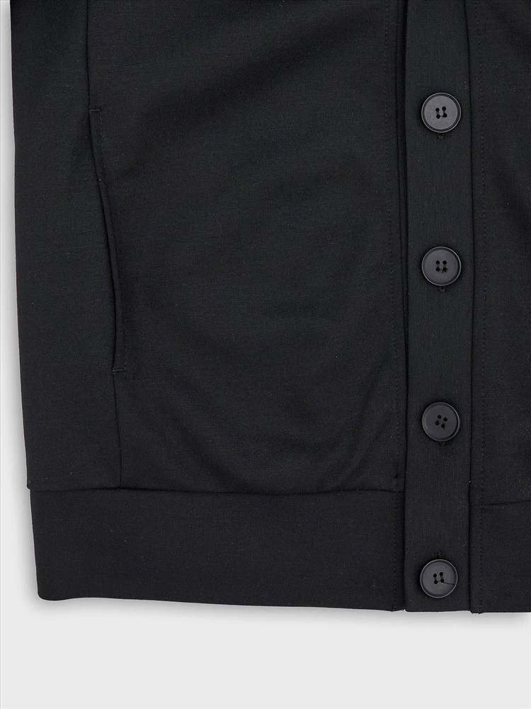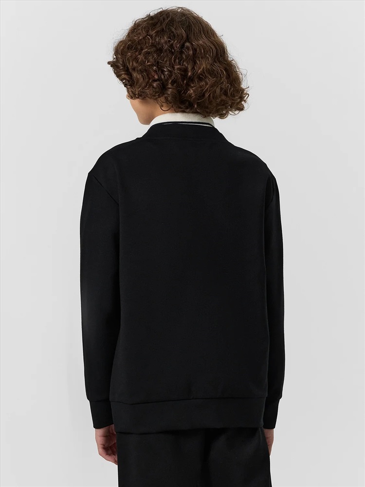 Жакет для мальчиков прямого силуэта. Спинка цельнокроенная, перед с центральной застежкой на пуговицы. Пуговицы на отрезной планке. Горловина V-вырез.