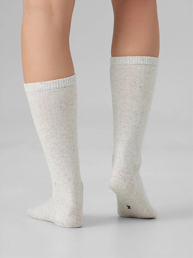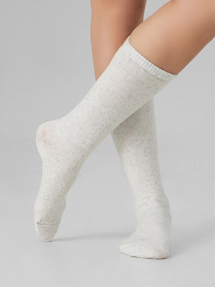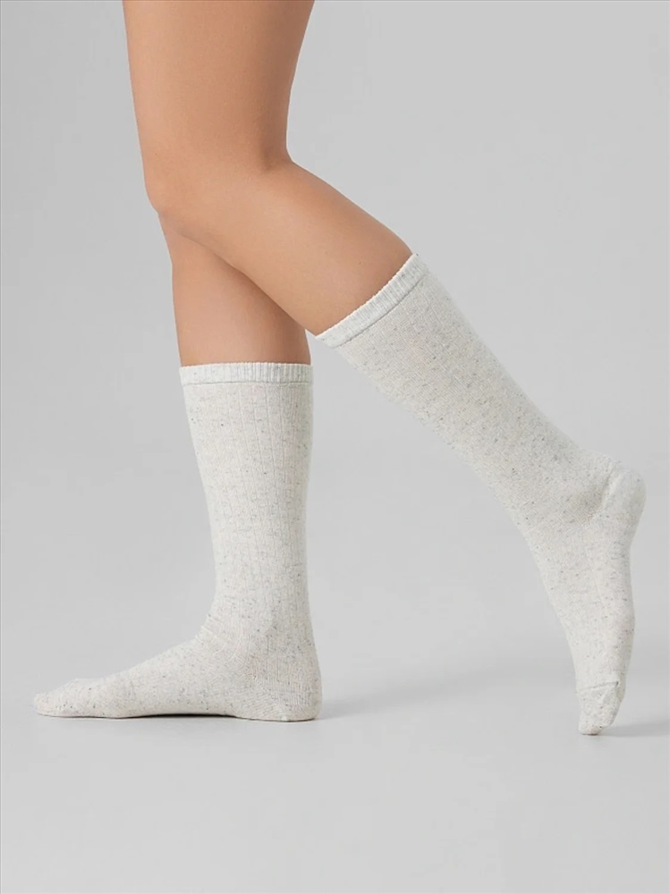рис.3370 Женские, классические носки с рисунком в виде перекидного переплетения (лапша 5:1) из смешанной пряжи с содержанием шерсти и льна.