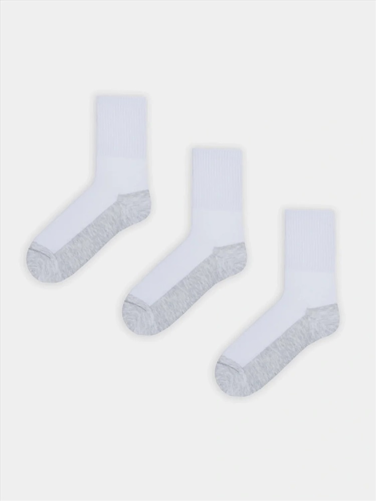 Набор из трех пар женских носков — практичное решение для повседневного гардероба. Модель с высоким плотным бортом надежно фиксируется на ноге, не сползая в течение дня. Меланжевый след придает стильный акцент, оставаясь незаметным под обувью.