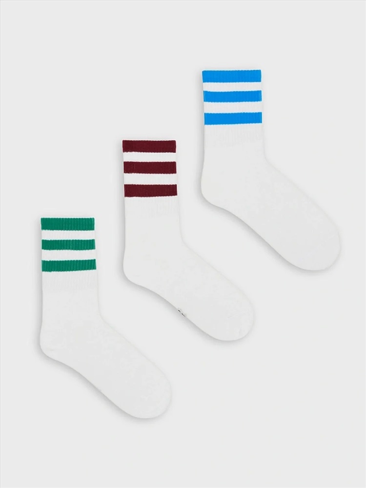 Этот набор из трех пар высоких женских носков – идеальное сочетание комфорта, качества и стильного дизайна. Яркий узор в виде разноцветных полосок добавляет оригинальности и позволяет легко вписать носки в любой образ. Изделия выполнены из натурального хлопка с добавлением эластичных волокон, что обеспечивает мягкость, отличную воздухопроницаемость и удобную посадку. Носки приятно прилегают к коже, позволяя ногам дышать и предотвращая перегрев. Эластичный материал гарантирует надежную фиксацию, не сдавливает стопу и не оставляет следов, а усиленные зоны в области пятки и мыска повышают долговечность, обеспечивая устойчивость к износу. Практичный и стильный аксессуар, который подарит комфорт на каждый день и добавит яркий акцент в ваш гардероб. Отличный выбор для тех, кто ценит качество и оригинальные детали!