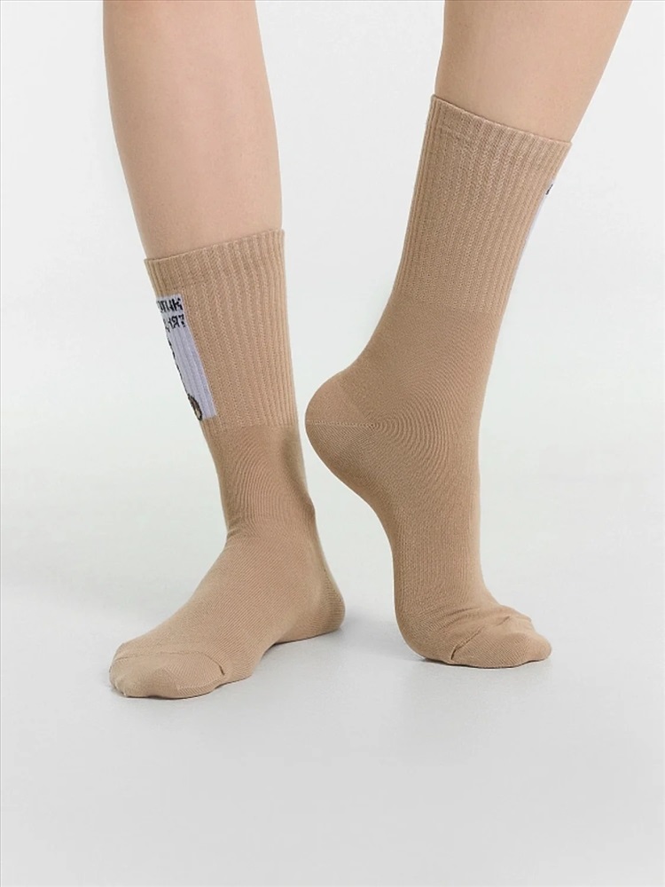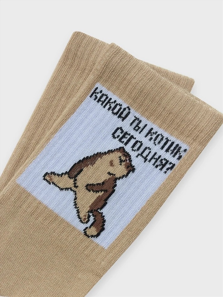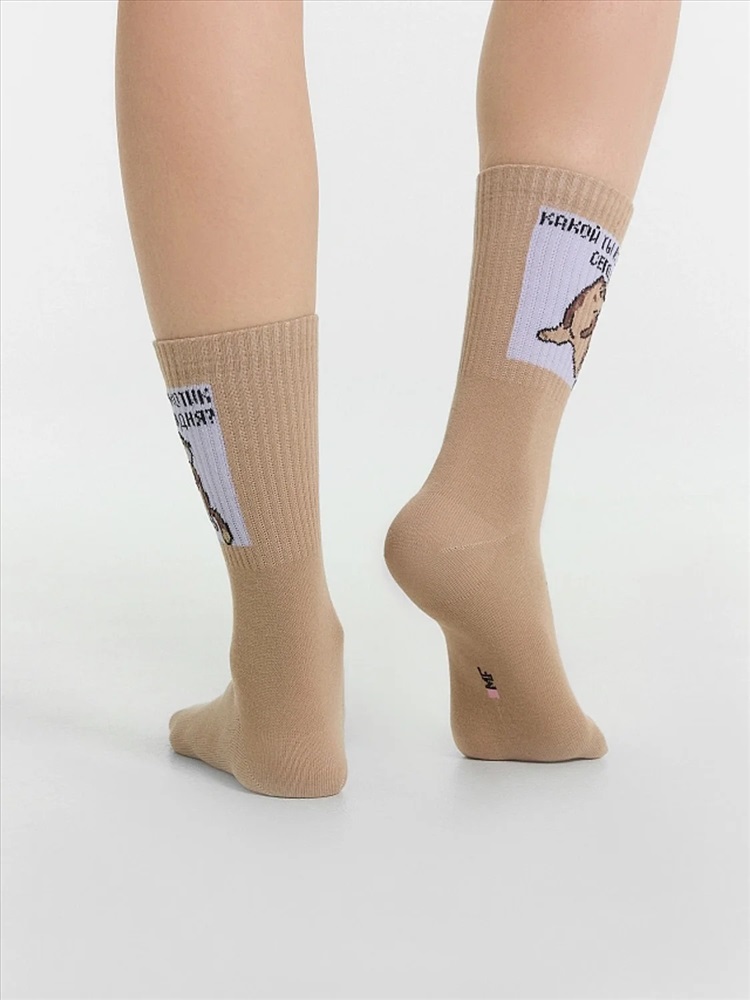 рис.2868 Женский носок с высоким плотным бортом, а также с рисунком в виде надписи и кота.