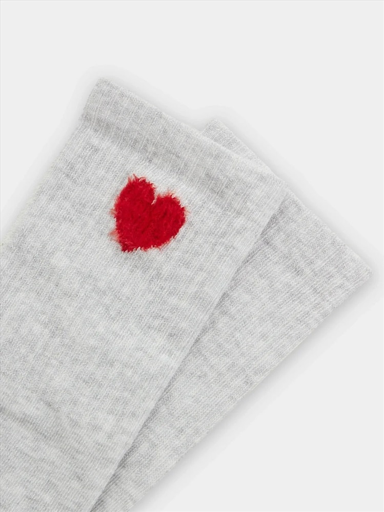 рис.2870 Женский носок с высоким плотным бортом и рисунком в пушистого сердечка