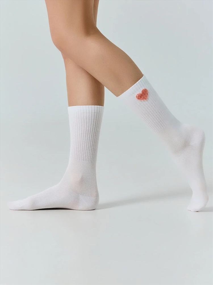 рис.2870 Женский носок с высоким плотным бортом и рисунком в пушистого сердечка