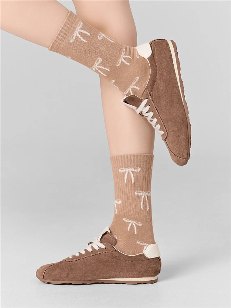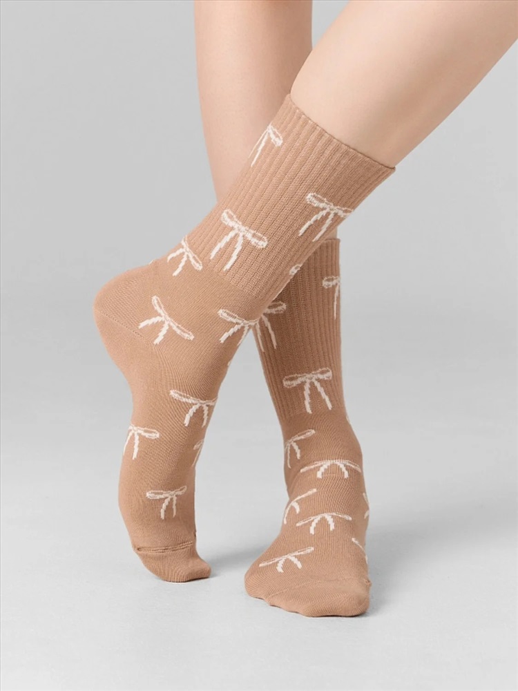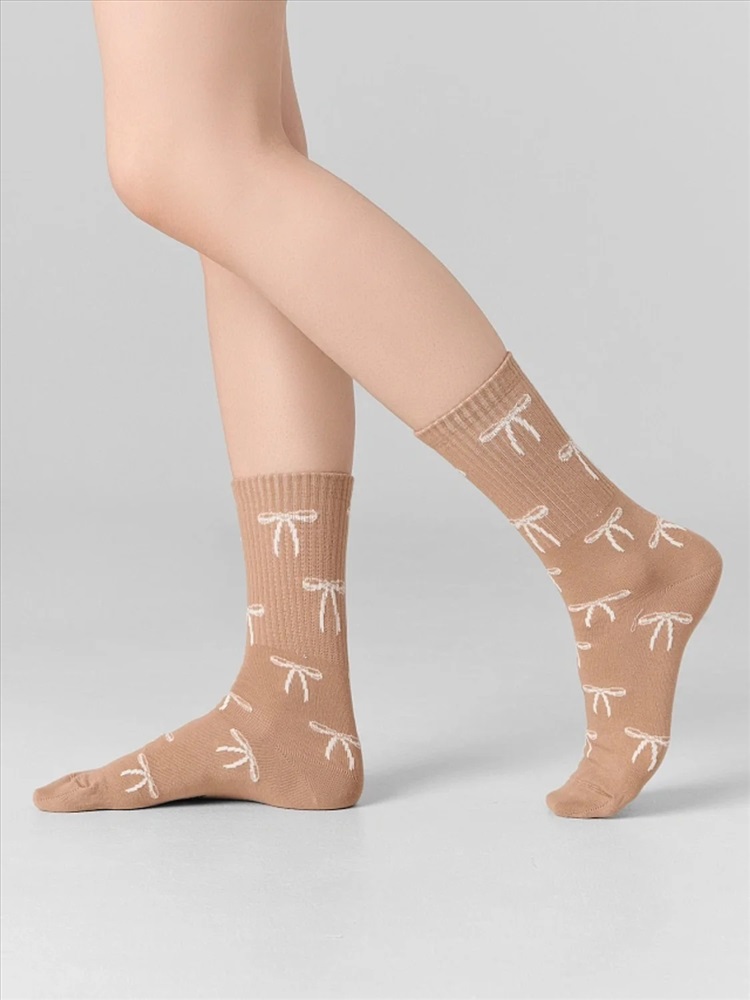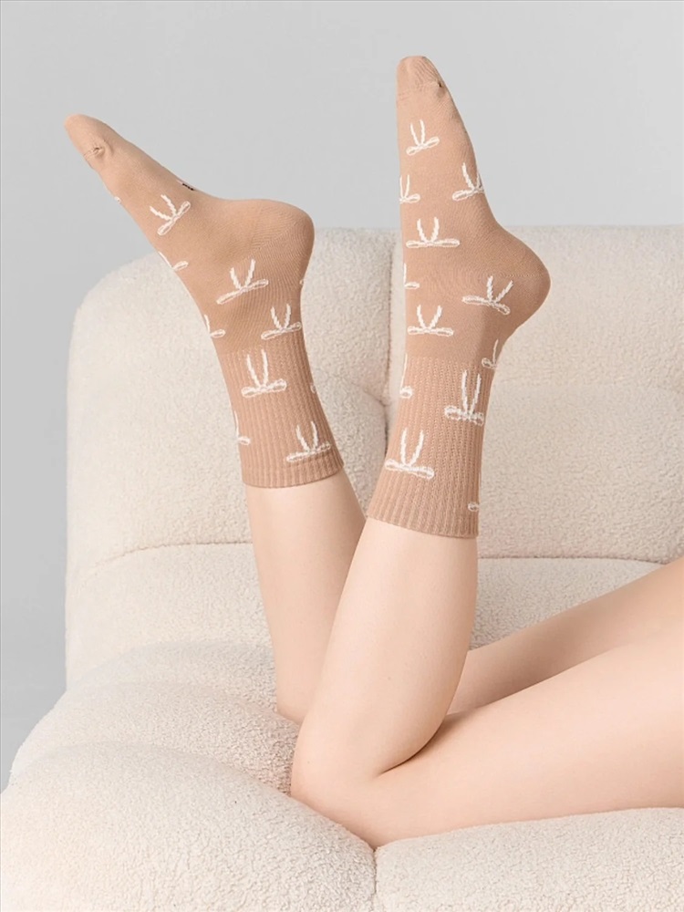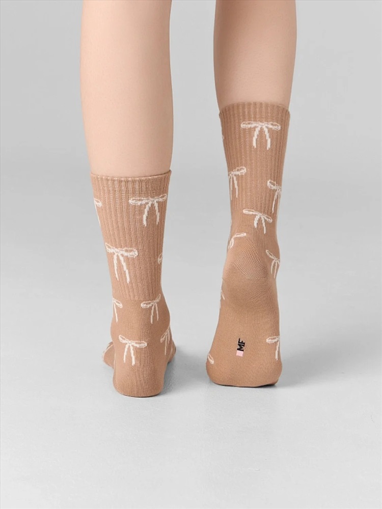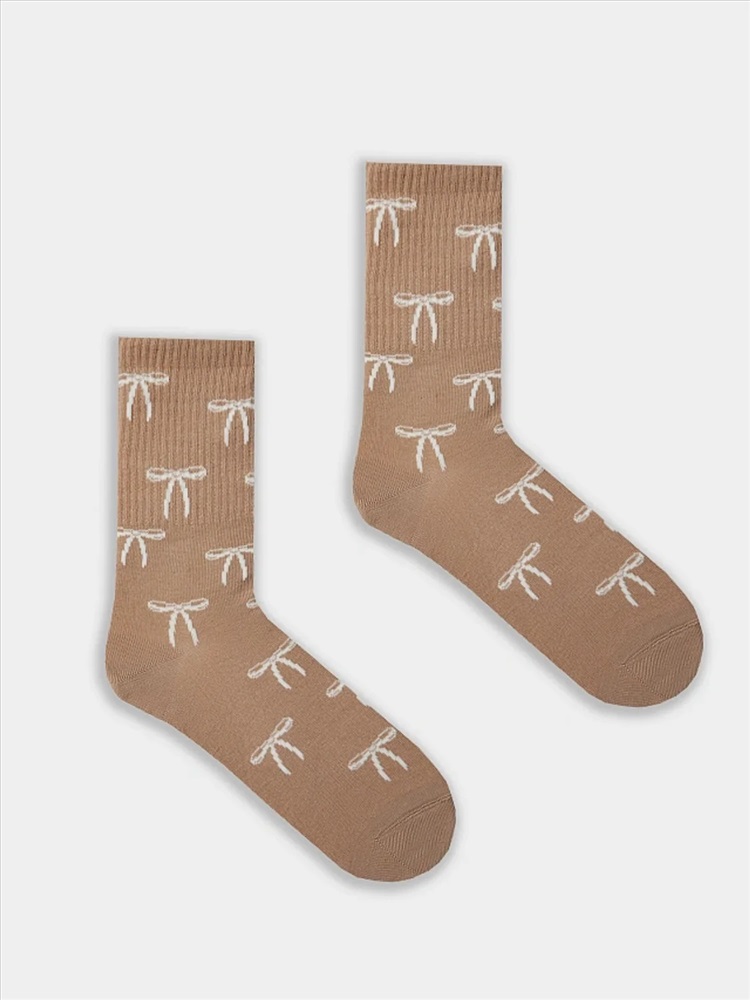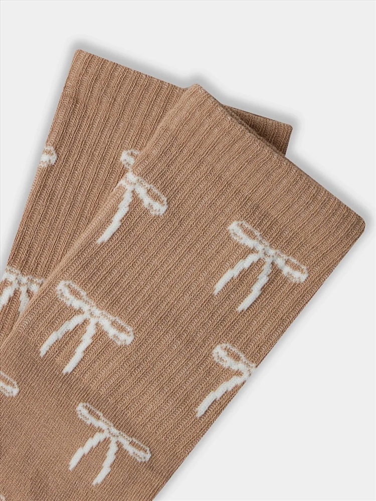 рис.3120 Женские носки с высоким плотным бортом и рисунком в виде бантиков по всему изделию.