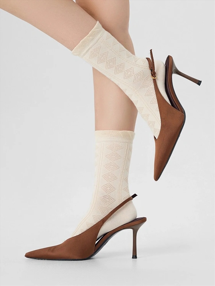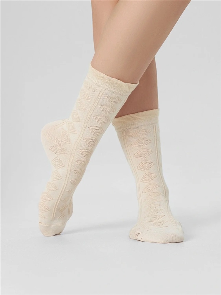рис.3113 Женские, классические, однотонные носки с объёмным геометрическим рисунком.