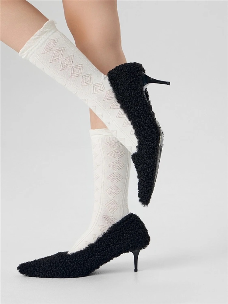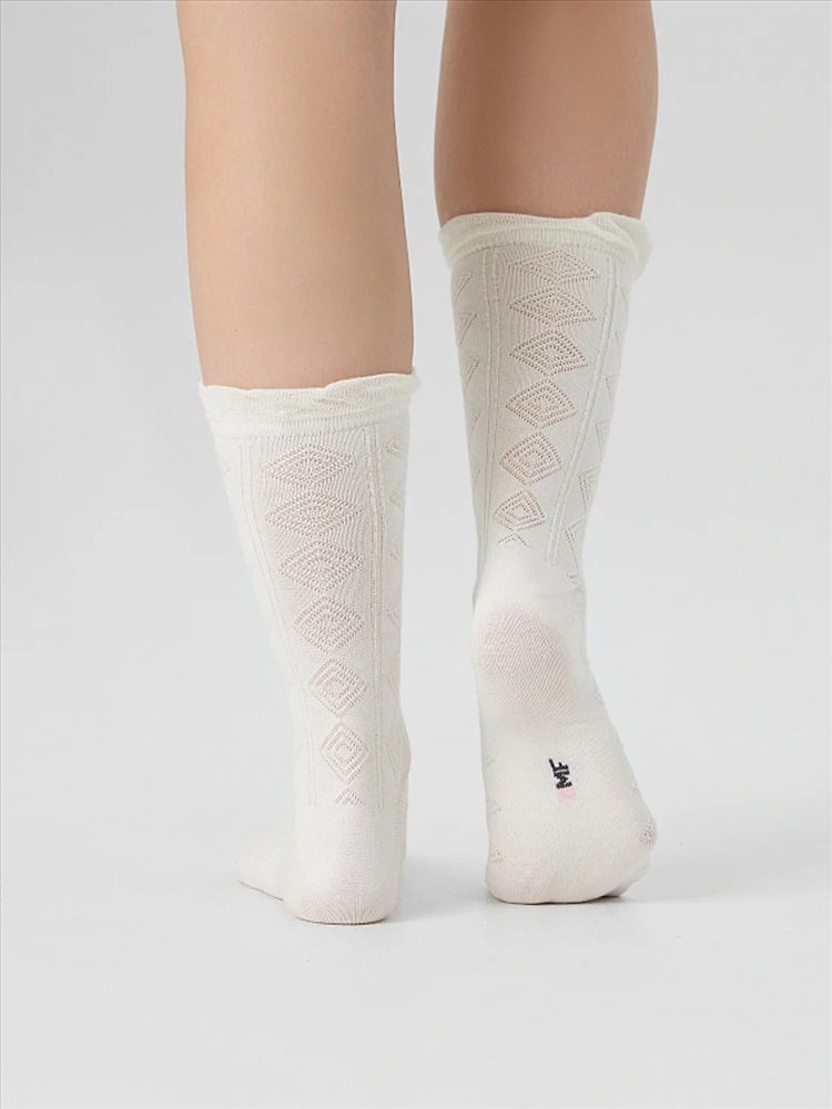 рис.3113 Женские, классические, однотонные носки с объёмным геометрическим рисунком.