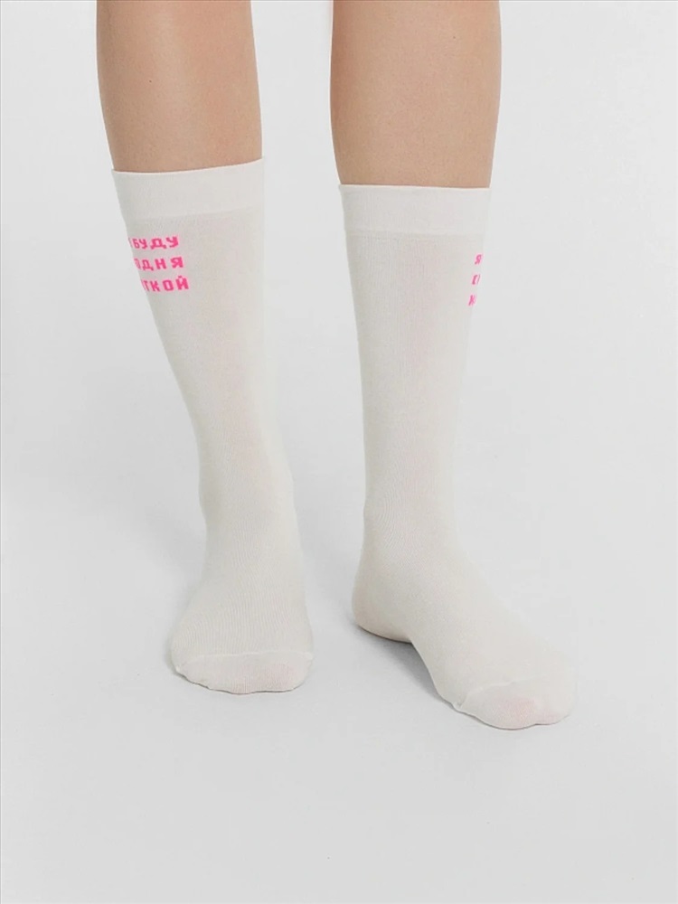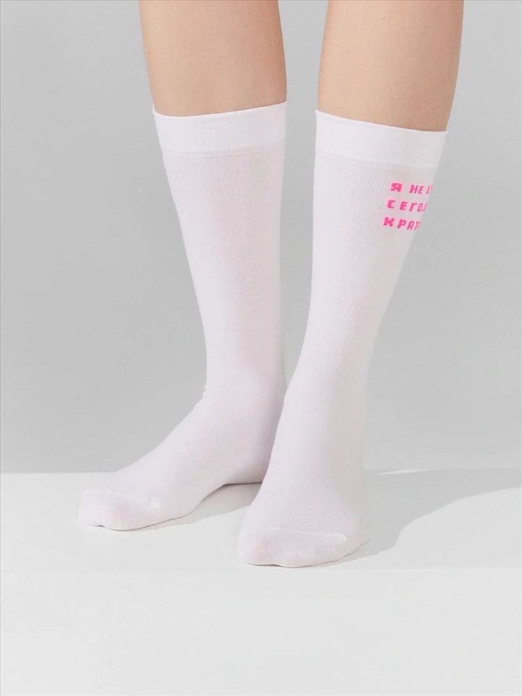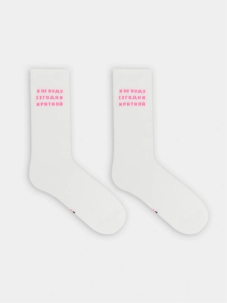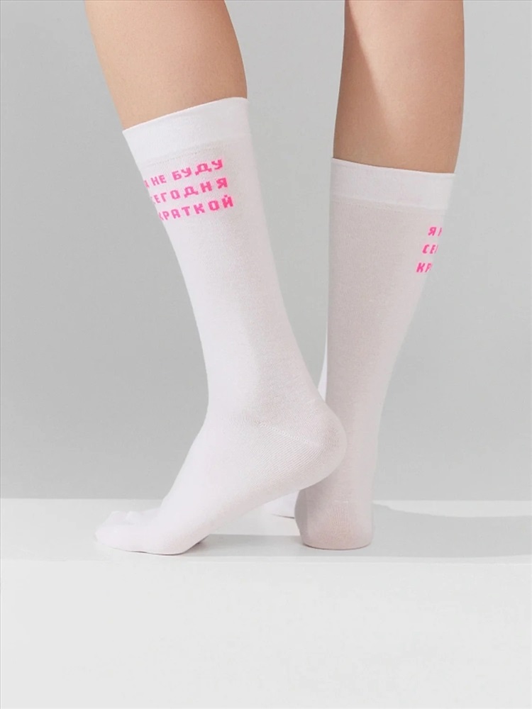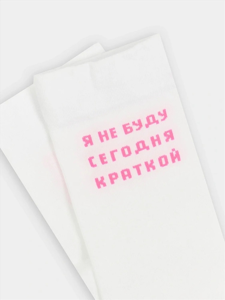 рис.3018 Женский однотонный носок с тонким гладким бортом и рисунком в виде надписи "Я не буду сегодня краткой".