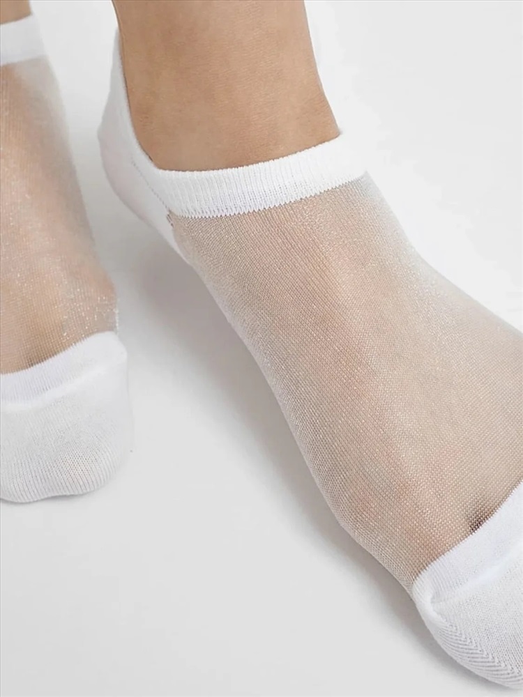 рис.1676 Женские носки супер короткие с хлопковой пяткой и мыском и прозрачным полиамидом на следу.
