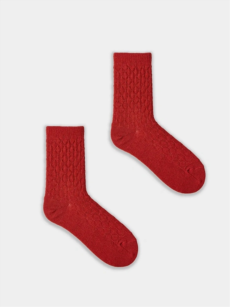 Высокие носки женские шерстяные с текстурой объемных ромбиков. Выполнены из высококачественного гребенного хлопка — тонкого, прочного и эластичного. Натуральные волокна отлично пропускают воздух и впитывают влагу, обеспечивают ощущение комфорта в течение дня. Благодаря небольшому количеству эластана в составе, носочки хорошо облегают и сохраняют форму, практичны и долговечны. Пятка и мысок дополнительно усилены для защиты от протирания при активном движении. Резинка мягко, но надежно удерживает носки, не передавливая ногу и не оставляя на коже следов. Отличный вариант для зимних дней и новогодних праздников. Нежные, достаточно теплые и мягкие, создадут атмосферу тепла и уюта. Порадуйте себя и своих близких прекрасными носочками от Mark Formelle!