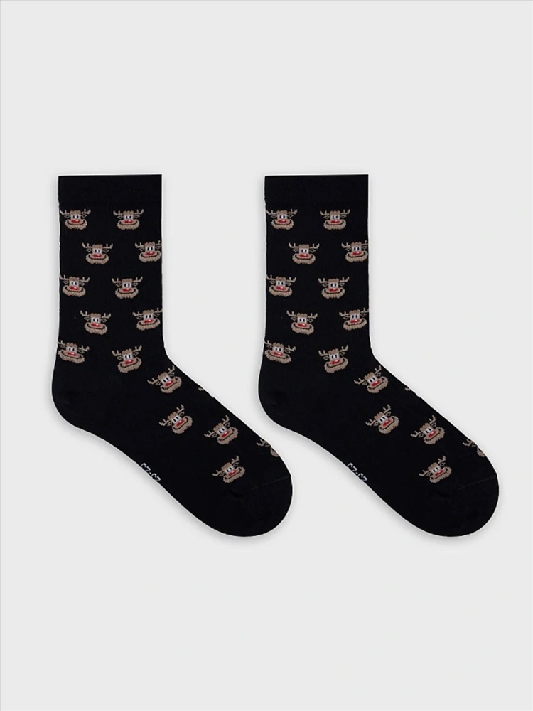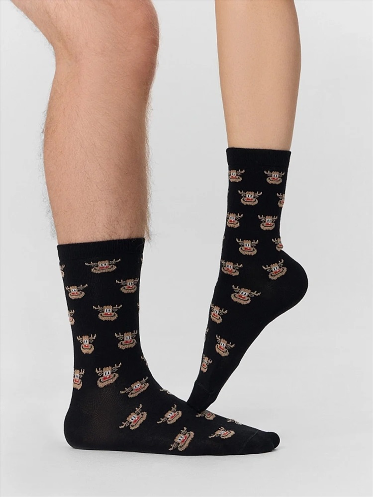 Новогодние носки унисекс с узором в виде оленей подарят праздничное настроение. Они выполнены из мягкого чистого хлопка, обеспечивающего комфорт и уют в течение всего дня. Натуральный материал позволяет коже дышать, не вызывает раздражений и создает приятные ощущения на ногах. Эти носки станут ярким акцентом вашего гардероба, добавляя новогоднего очарования и уюта.