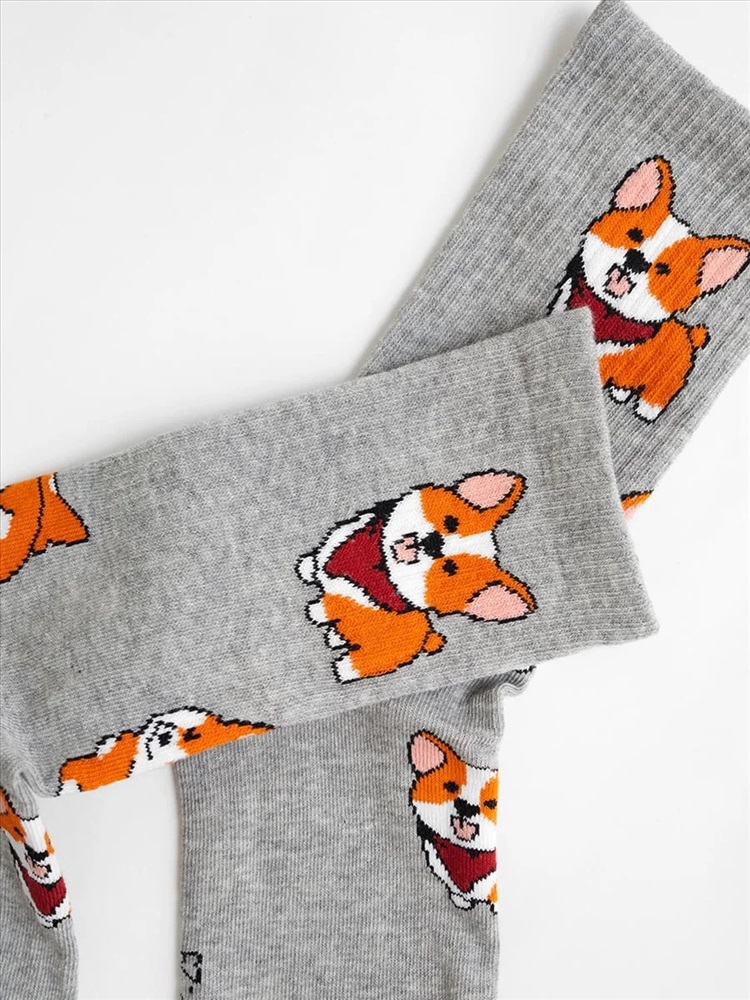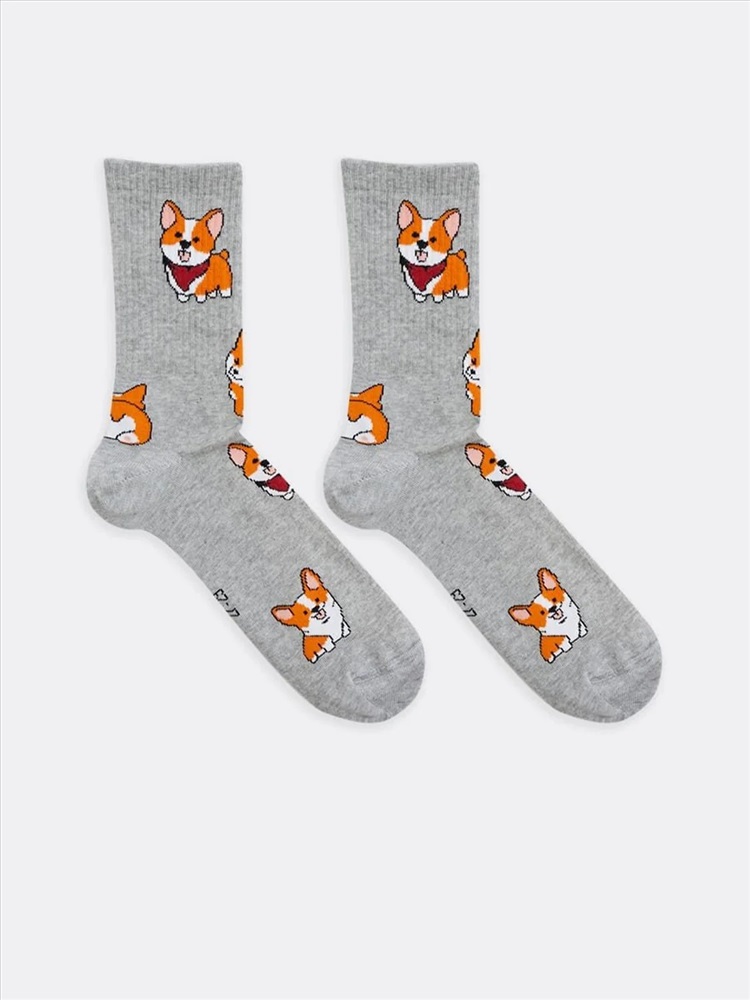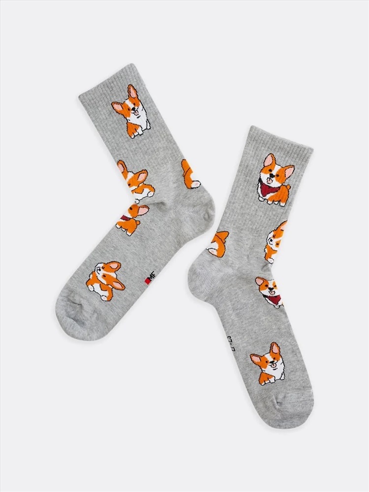 рис.1906 Носок классический гладкий с плотным высоким бортом и рисунком в виде собачек.