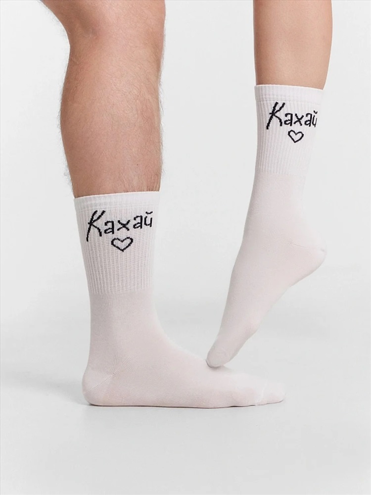 рис.2861 Носок высокий с плотным бортом и рисунком в виде надписи.