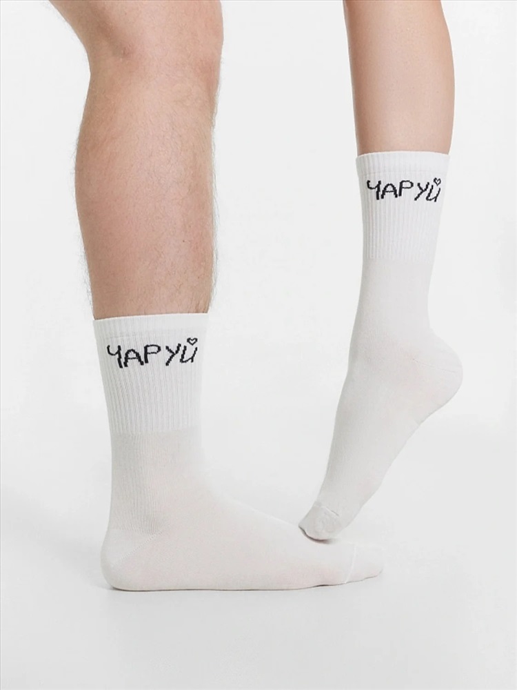 рис.2862 Носок высокий с плотным бортом и рисунком в виде надписи.