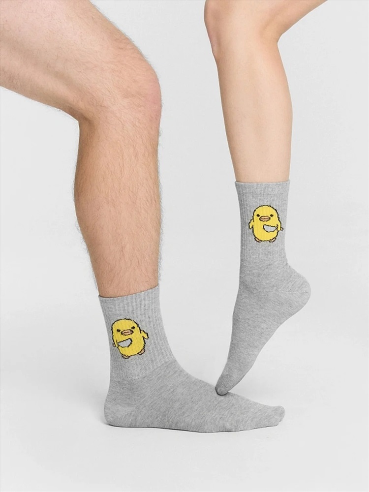 рис.2880 Носки высокие с плотным бортом и рисунком в виде надписи цыпленка.