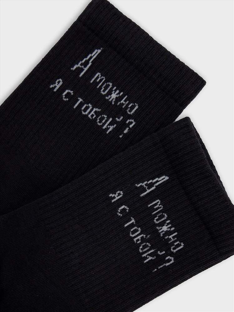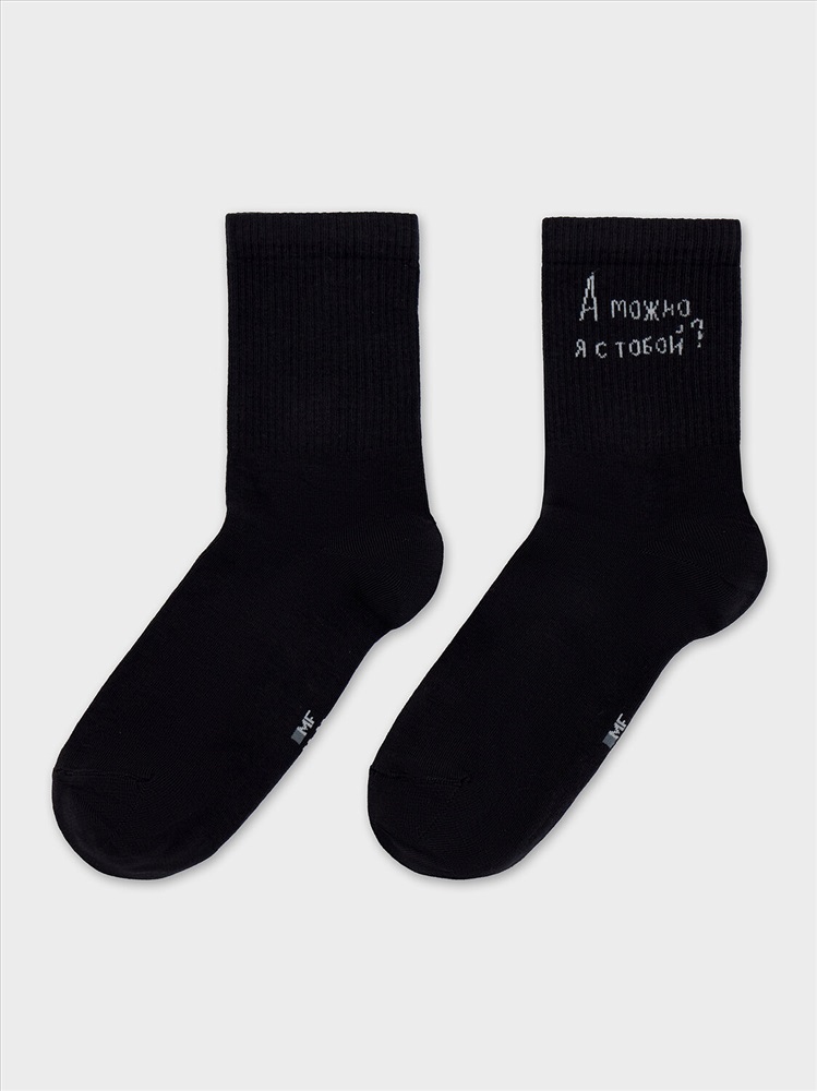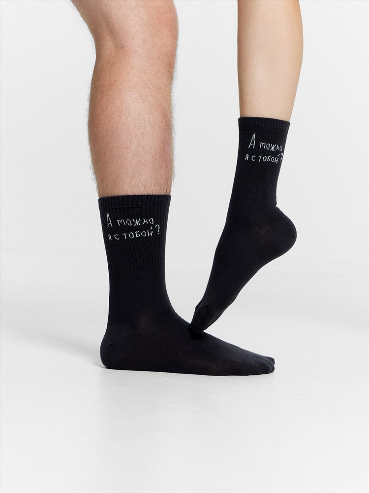 рис.2882 Носки высокие с плотным бортом и рисунком в виде надписи "А можно я с тобой"