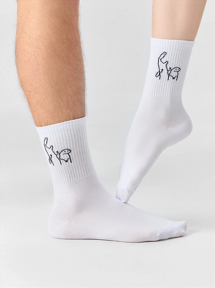 рис.3228 Носок высокий с плотным бортом и рисунком в виде мема.