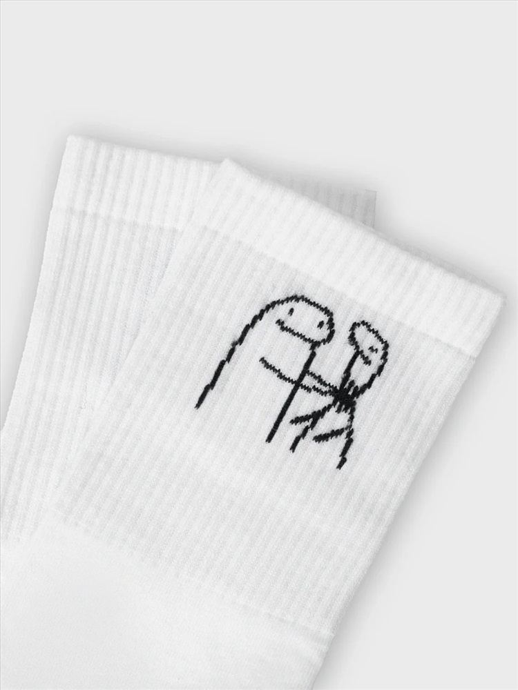 рис.3229 Носок высокий с плотным бортом и рисунком в виде мема.