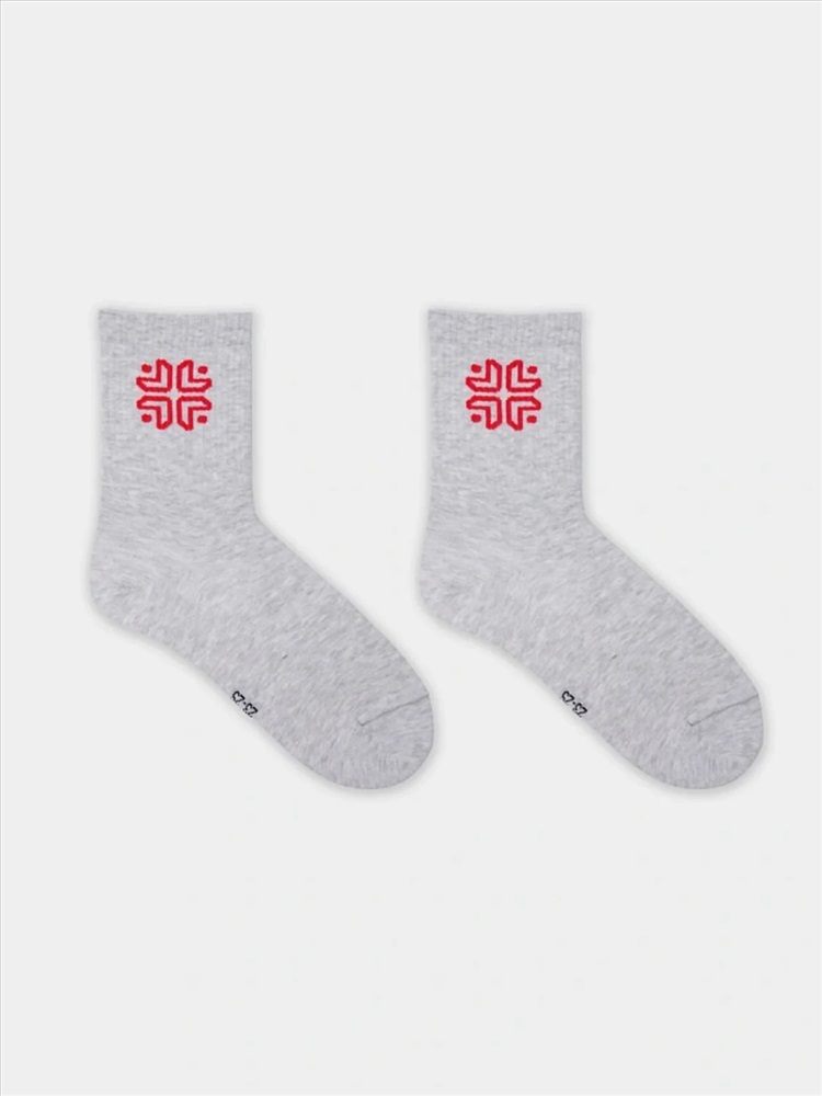 рис.3237 Носок высокий с плотным бортом и рисунком в виде орнамента.
