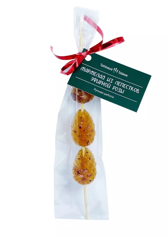 Состав: Сироп из лепестков эфирной розы (патока. сахар, пектин яблочный, лепестки эфирной розы, лимонная кислота), карнаубский воск.
