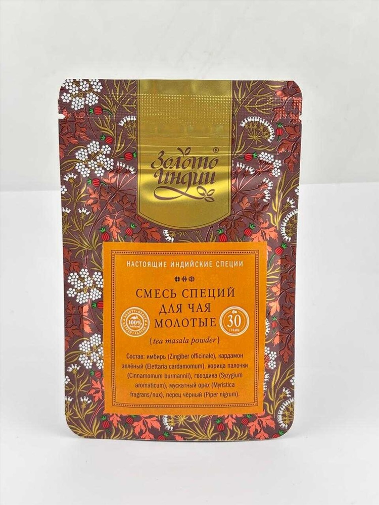 Чай масала (букв. «чай со специями») напиток родом из Индийского субконтинента, получаемый путем заваривания чая со смесью индийских специй и трав. Масала чай известен как напиток, согревающий душу и тело. Этот напиток известен уже несколько тысячелетий. Чай относится к превосходным активаторам. Масала чай всегда являлся незаменимым дополнением к рациону человека, у которого наблюдается вялое пищеварение, недостаток энергии и сонливость. Если выражаться терминами Аюрведы, то этот чай добавляет Питты в разбушевавшуюся Капху. В зимнюю пору этот продукт будет как нельзя кстати. Масала чай взбодрит вас утром лучше традиционного кофе и на более длительный период времени. Масала – напиток из черного чая, заваренного с добавлением молока и ароматных специй. Хотя никакого классического или общепринятого рецепта чай-масала нет, он обязательно состоит из трех компонентов — чая, молока и специй. Состав:Семена мускатного ореха и фенхеля; плоды зеленого и чёрного кардамона; имбирный корень; гвоздика; плоды бадьяна; корица; перец чёрный (горошек). Способ использования:Традиционная масала в Индии используется для приготовления ароматного тонизирующего утреннего чая. В европейской кухне многокомпонентная смесь также нередко добавляется в чай, но чаще масалу добавляют в блюда, приготавливаемые из бобовых, мяса и дичи. Ингредиенты придают готовым продуктам приятный аромат и легкую пикантность. Смесь можно добавлять в маринады, подливы, острые и нежные соусы. Полезные свойства:Устраняет апатию и сонливость, улучшает кровообращение, пробуждает аппетит, ускоряет обменные процессы в организме. Масала характеризуется согревающим эффектом, поэтому ее можно использовать для профилактики и лечения сезонных простудных заболеваний. Данная продукция не является лекарственным средством