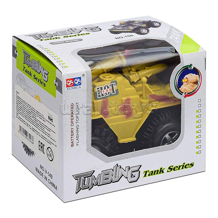 Код: 242690 Страна производитель: Китай Размеры упаковки: 11.7 x 8.9 x 9.6 см Количество в коробке: 96 • Размеры машины: 11х7.5х9 см. • Работает от 2-х батареек "АА" (не входят в комплект) • Материал: пластик. • Колёса с резиновыми шинами. • Соответствует требованиям безопасности продукции. • Для детей от 3-х лет. Комментарии к товару