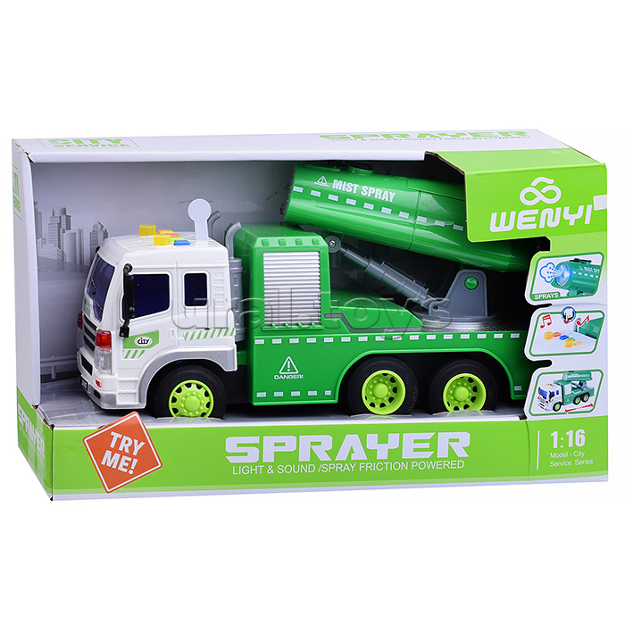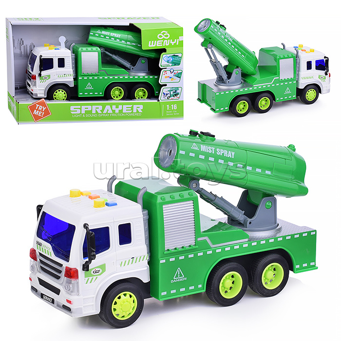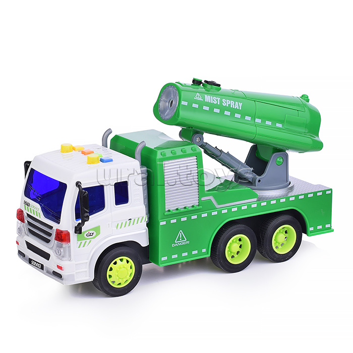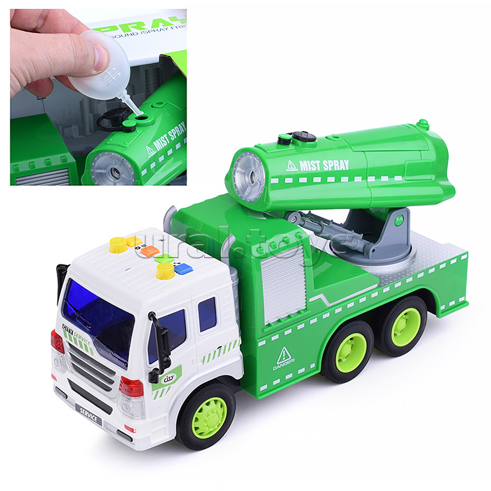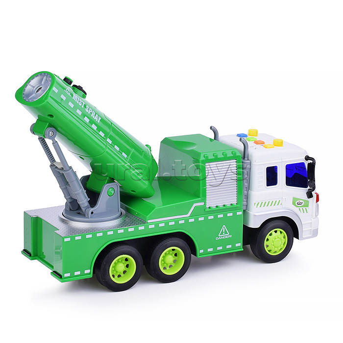 Код: 373640 Штрихкод: 6933113369518 Страна производитель: Китай Размеры упаковки: 32 x 11 x 18 см Количество в коробке: 24 Машина для уборки улиц с водной пушкой. Инерционный механизм движения. Кнопки на крыше активируют звуки двигателя, клаксона, заднего хода, сопровождаемые подсветкой проблесковых маячков. Звуки работают от 3-х батареек "AG13" (в комплекте). Водная пушка вращается на 360 градусов, поднимается и опускается, выпускает струю пара с синей подсветкой. Пушка работает от 3-х батареек "ААА" (не входят в комплект). Размер: 26 х 9 х 15 см. Масштаб 1:16. Материал: пластик, пвх. Для детей от 3-х лет. Соответствует требованиям безопасности продукции. Комментарии к товару