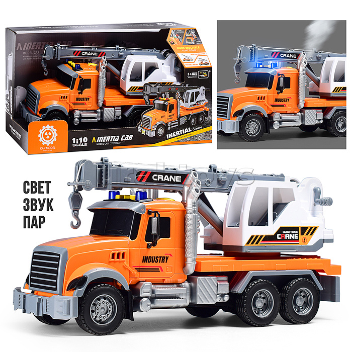 Код: 505381 Штрихкод: 6904111104333 Страна производитель: Китай Размеры упаковки: 39 x 14 x 21 см Количество в коробке: 18 • Размеры игрушки: 33х11х15 см. • Функции: - инерционный механизм движения. - разматывающаяся лебёдка. - башня поворачивается на 360 градусов. - звук двигателя. - мигание ламп. - холодный пар из трубы (при наличии воды в резервуаре) • Свет, звук и пар работают от 3-х батареек "ААА" (не входят в комплект) • Материал: пластик. • Соответствует требованиям безопасности и стандартам качества продукции. • Для детей от 3-х лет. Комментарии к товару