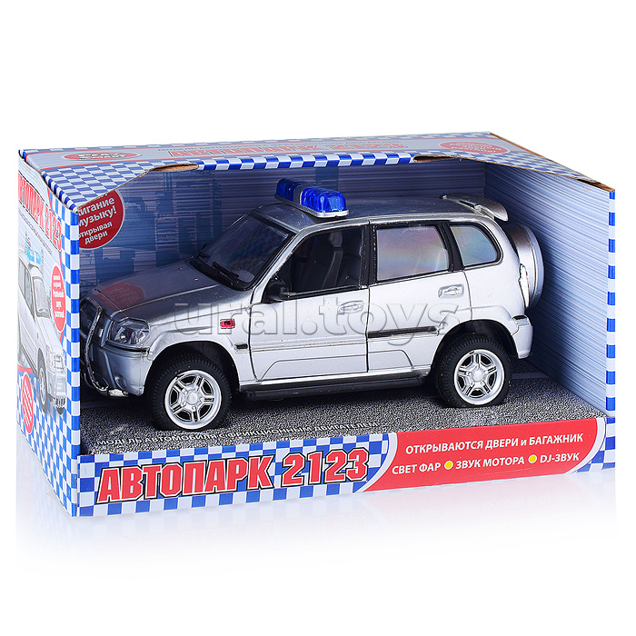 Код: 032746 Страна производитель: Китай Размеры упаковки: 22 x 12 x 11 см Количество в коробке: 18 Машина «Автопарк 2123» нива серебристая - отличный подарок для юного поклонника автомобилей! • Фрикционный механизм (заводится вручную, при разгоне колес вперед). • Открываются двери и багажник. • Свет фар. • Мелодия и звуковые эффекты. • Работает от 3-х батареек 1,5V типа «AG13». • Размеры: 18 х 8,5 х 8,5 см. • Состоит из пластмассы. • Соответствует стандартам качества и требованиям безопасности продукции. • Для детей от 3-х лет. Комментарии к товару