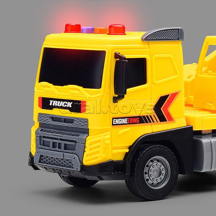 • Размеры машины (ДхШхВ): 17.5х8.5х13 см. • Функции: - инерционный механизм движения. - подвижный ковш. - поворотная платформа. - звук запуска и работы мотора. - звук клаксона. - звук работы техники. - сигнал заднего хода. - мигание проблесковых маячков. • Свет и звук работают от 3-х батареек "AG13" (входят в комплект для демонстрации). • Материал: пластик. • Соответствует требованиям безопасности продукции. • Для детей от 3-х лет.