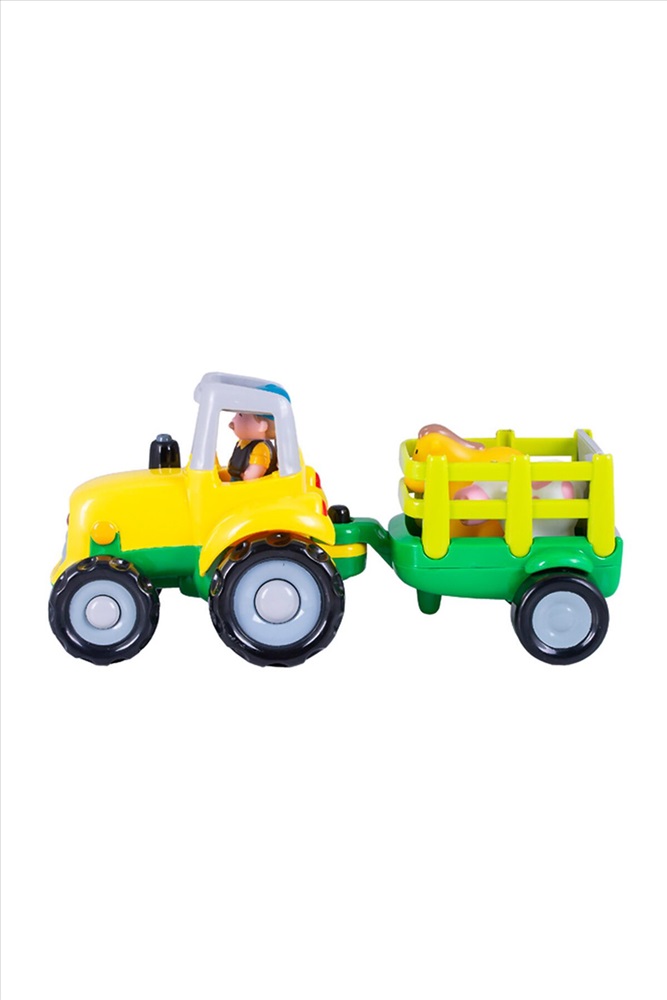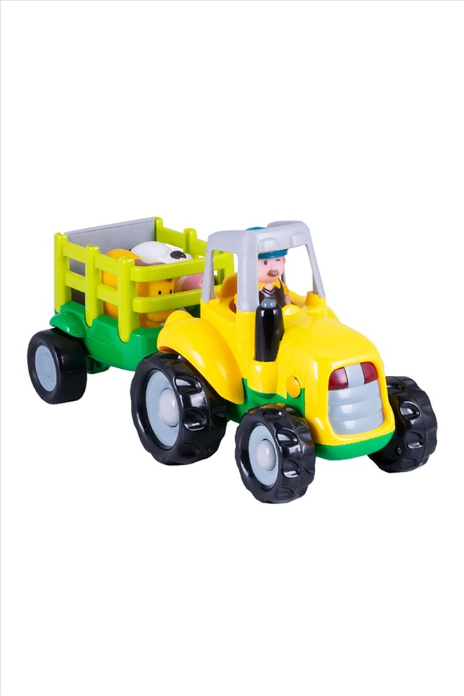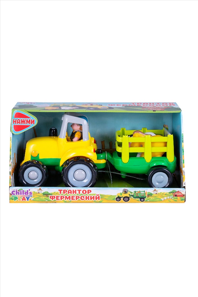ID товара: 266129 Сезон: Осень/Зима Возраст: 4+ Страна бренда: Россия Страна производства: Китай Ролевой игровой набор с транспортным средством и фигурками познакомит детей с сельскими профессиями, научит управлять трактором и разыгрывать сценки про перевозку домашних животных. Трактор с подвижными колесами желтого цвета, имеет открытую серую кабину водителя, куда можно посадить фигурку. Спереди оснащен сигнальным фонарем и фарами. Сзади трактора прикрепляется вместительный прицеп на колесах, в котором располагаются фигурки животных. В наборе фигурка тракториста в желтой футболке, черной жилетке, синих брюках и высоких коричневых сапогах. На голове синяя кепка. Также 2 фигурки домашних животных – белой пятнистой коровы и коричневого теленка. Нажмите на сидящую в кабине водителя фигурку, чтобы активировать звуковой сигнал и свет фар. Особенности набора: подвижные колеса трактора и прицепа прицеп можно прикреплять и откреплять от трактора в трактор помещается фигурка при нажатии на сидящую фигурку активируются световые и звуковые эффекты задняя крышка прицепа открывается в прицеп можно поставить фигурки животных В наборе: трактор прицеп тракторист 2 фигурки животных Внимание! Для работы игрушки необходимы 2 батарейки АА, включены в комплект. Комментарии к товару