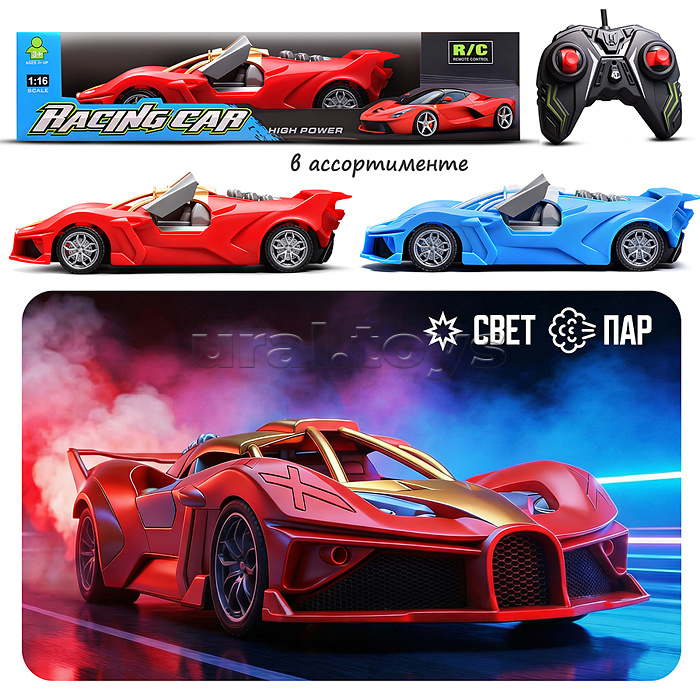 Код: 503645 Штрихкод: 6933118331367 Страна производитель: Китай Размеры упаковки: 33 x 12 x 7 см Количество в коробке: 60 • Размеры машины: 26×11×7 см. • Машина работает от 4-х батареек «АА» (не входят в комплект) • Пульт управления работает от 2-х батареек «АА» (не входят в комплект). • Функции: — движение вперед, назад, влево, вправо. — холодный пар из сопла (при наличии воды в резервуаре) — подсветка сопла. • Материал: пластик. • Соответствует требованиям безопасности продукции. • Для детей от 3-х лет. Комментарии к товару