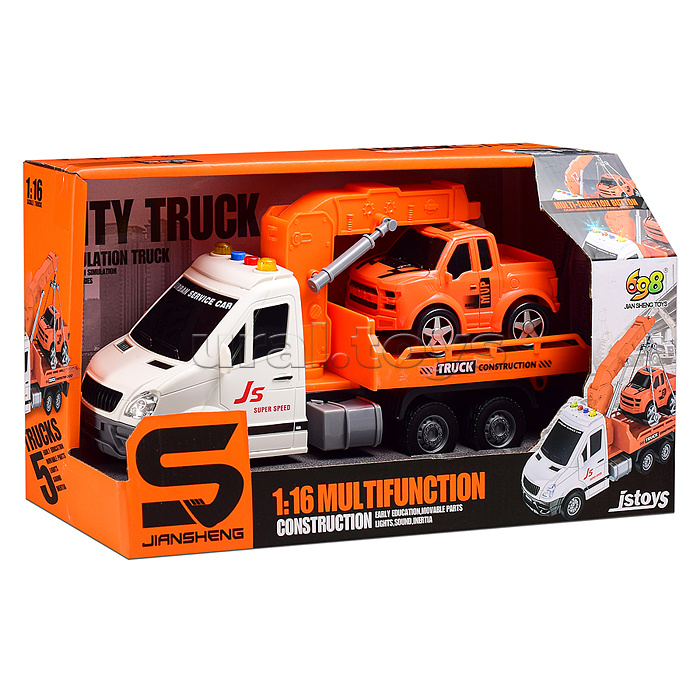 • Размеры машины (ДхШхВ): 28.5х8.5х13 см. • Функции: - инерционный механизм движения. - звук запуска и работы мотора. - звук клаксона. - звук работы техники. - сигнал заднего хода. - мигание проблесковых маячков. • Свет и звук работают от 3-х батареек "AG13" (входят в комплект для демонстрации). • В комплекте машинка (без механизмов): 10х7х6 см. • Материал: пластик. • Соответствует требованиям безопасности продукции. • Для детей от 3-х лет.